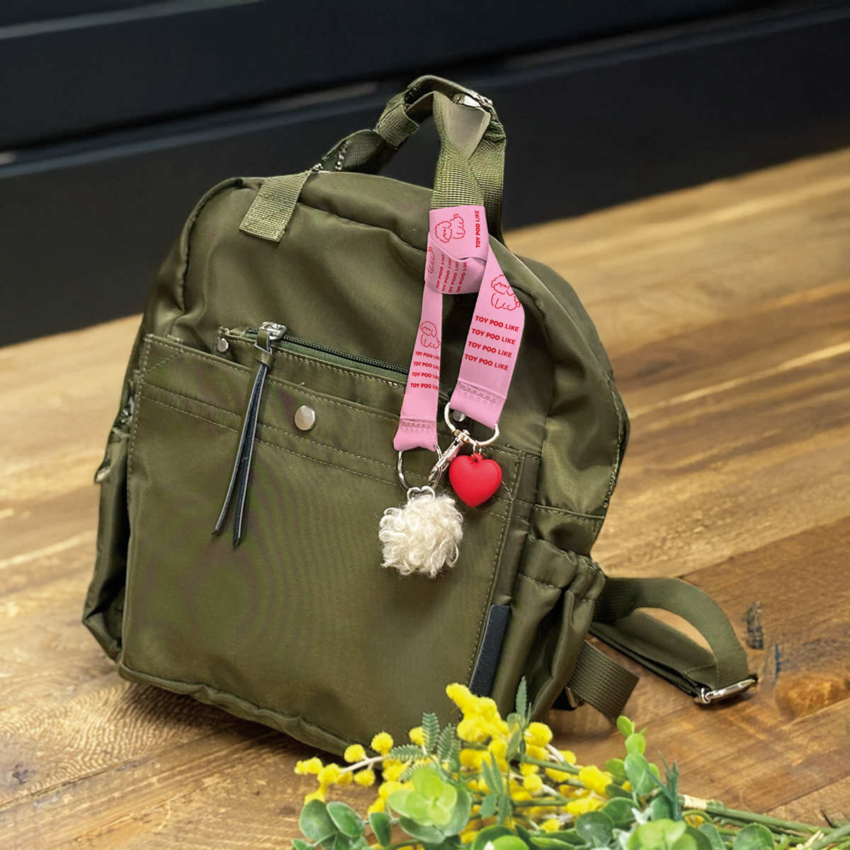 しっぽをイメージしたふわふわ素材に、ぷっくりハートのチャームがポイント。持っているだけで気分が上がる、おでかけのおともに、ギフトにもぴったりのアイテムです。