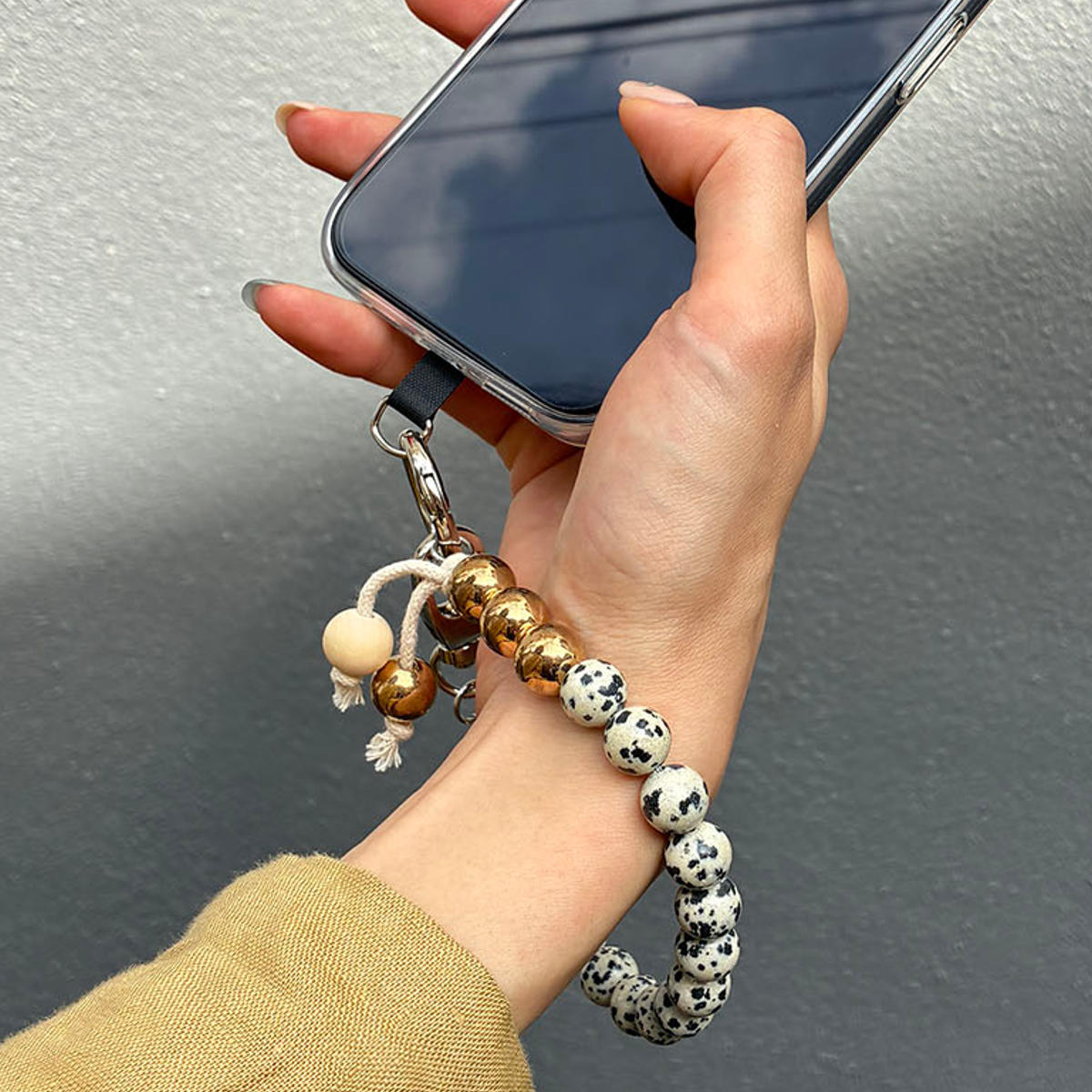 ●スマホの落下を防止しつつ、ブレスレット感覚で付けられるハンドストラップです。