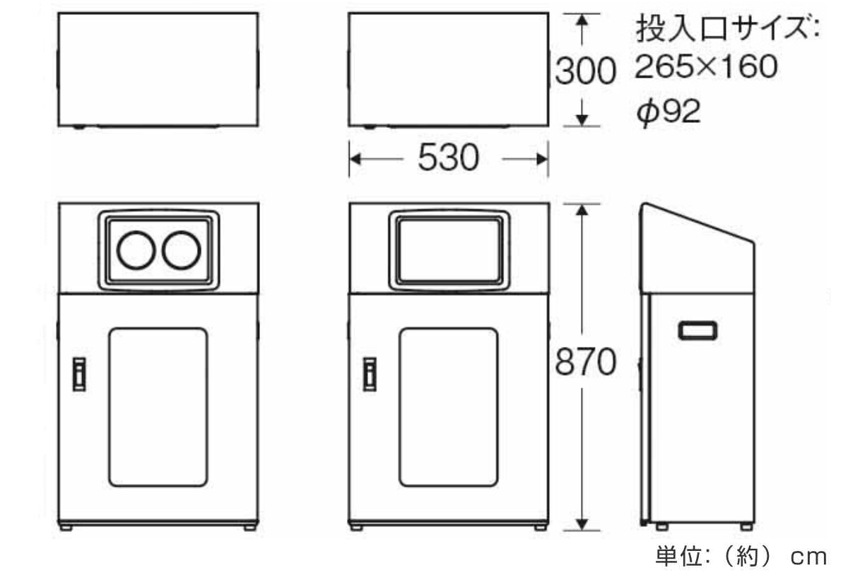 | 材質 | 本体:スチ-ル粉体塗装 投入口:再生PP100% 窓:再生PET80% ポリ袋ホルダー:スチールユニクロメッキ |