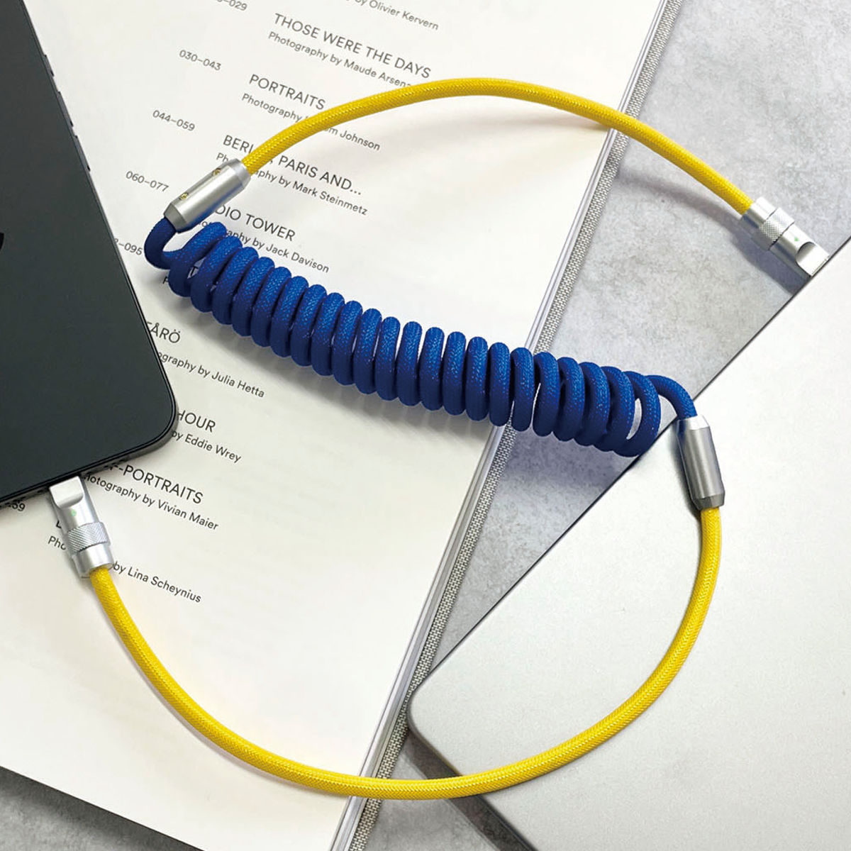 デスクのアクセントになり、使いながらも一目を引く存在感のケーブルです。快適に使える長さと、絡まりにくいコイル形状でストレスフリーに使用できます。
