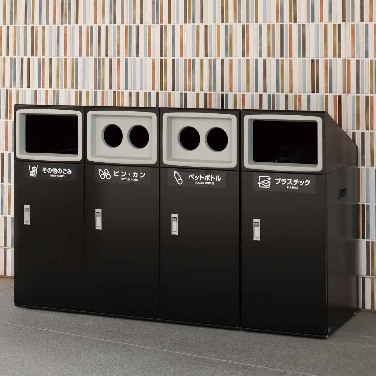 屋外で使えるリサイクルボックスです。奥行き30cmとコンパクトなので省スペースにも設置でき、複数個並べても圧迫感がありません。主張しすぎない控えめなデザインで、さまざまな施設に心地良く溶け込みます。