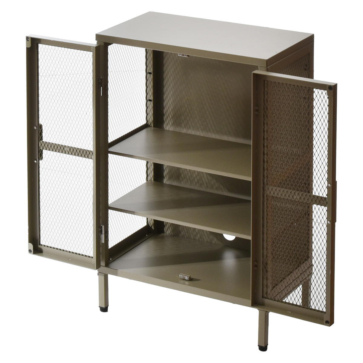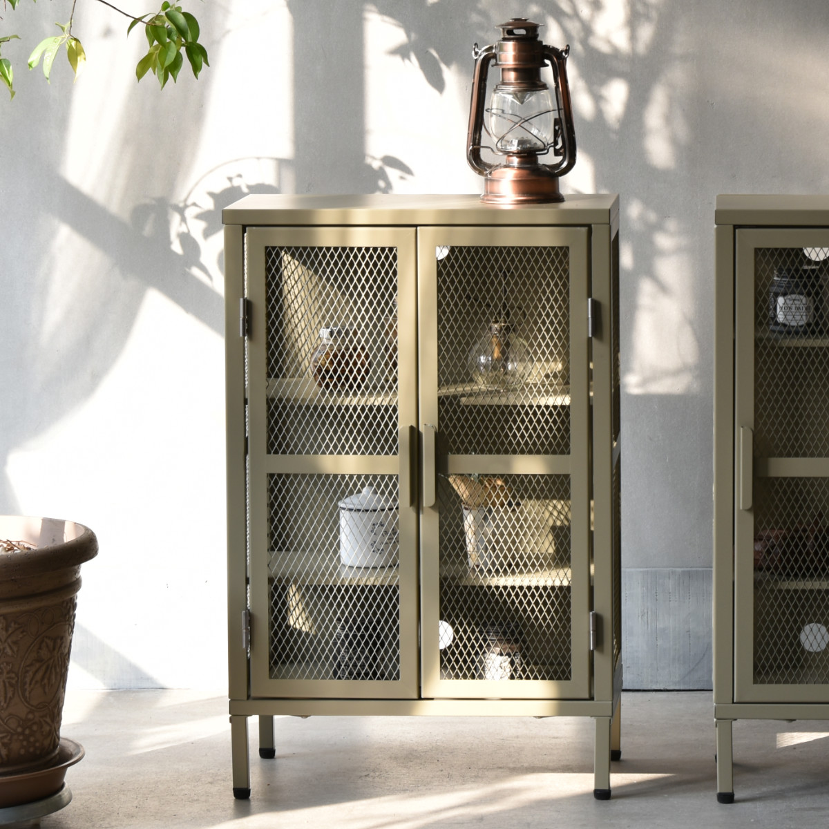 アメリカンヴィンテージをベースにした、洗練されたメッシュキャビネット。スチール×メッシュが生む抜け感が魅力の「見せる収納」です。