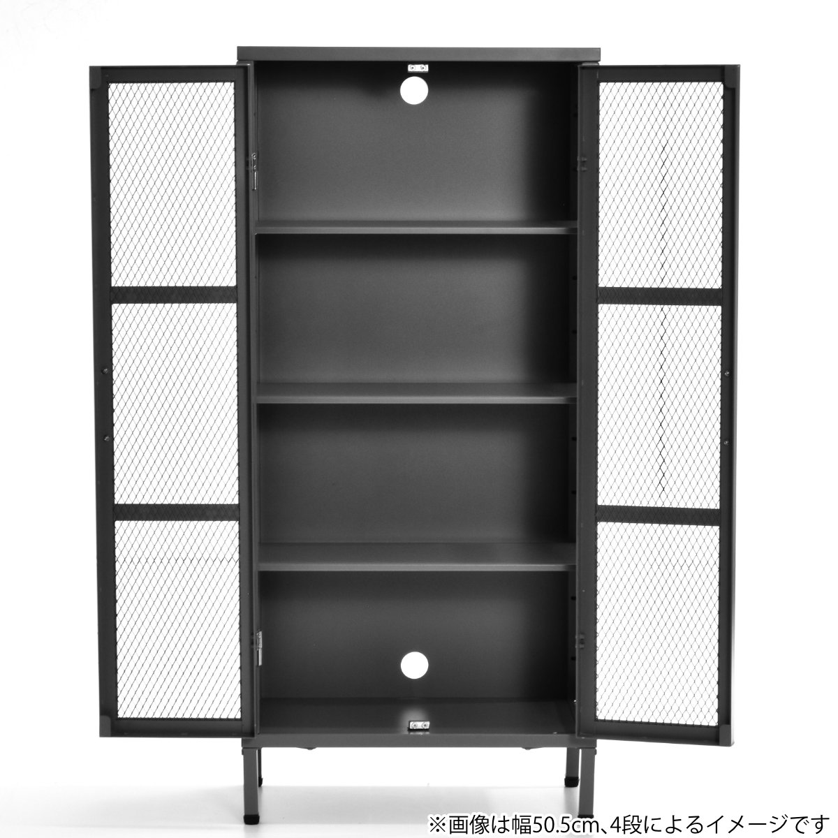 同シリーズにはスリム・ワイドの各サイズをラインナップ。3段・4段を組み合わせて並べれば、統一感のある落ち着いた空間を演出できます。リビングや書斎、ガレージなど、無骨な空間にも自然に馴染むデザインです。