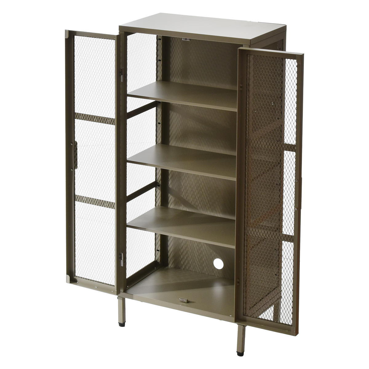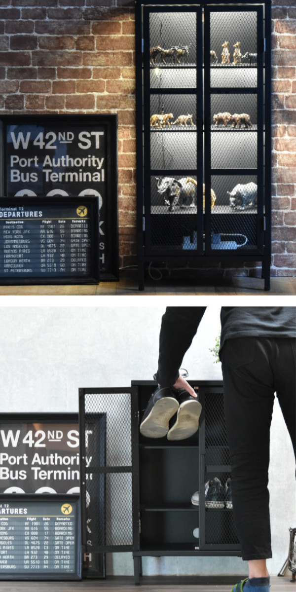 アメリカンヴィンテージをベースにした、洗練されたメッシュキャビネット。スチール×メッシュが生む抜け感が魅力の「見せる収納」です。