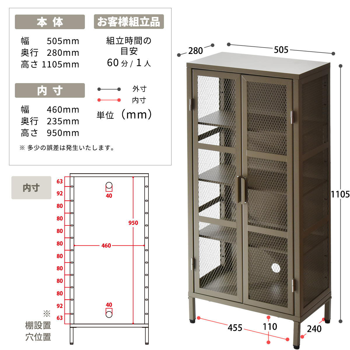 | サイズ | 外寸:約 幅50.5×奥行28×高さ110.5(cm) 内寸:約 幅46×奥行23.5×高さ95(cm) |