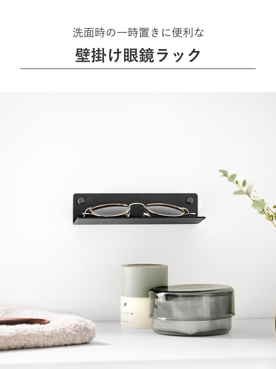 使いやすい位置に石こうボードピンで簡単に設置できるメガネラックです。入浴や洗顔時の一時置きに便利に使えます。