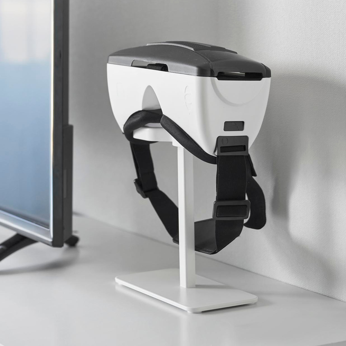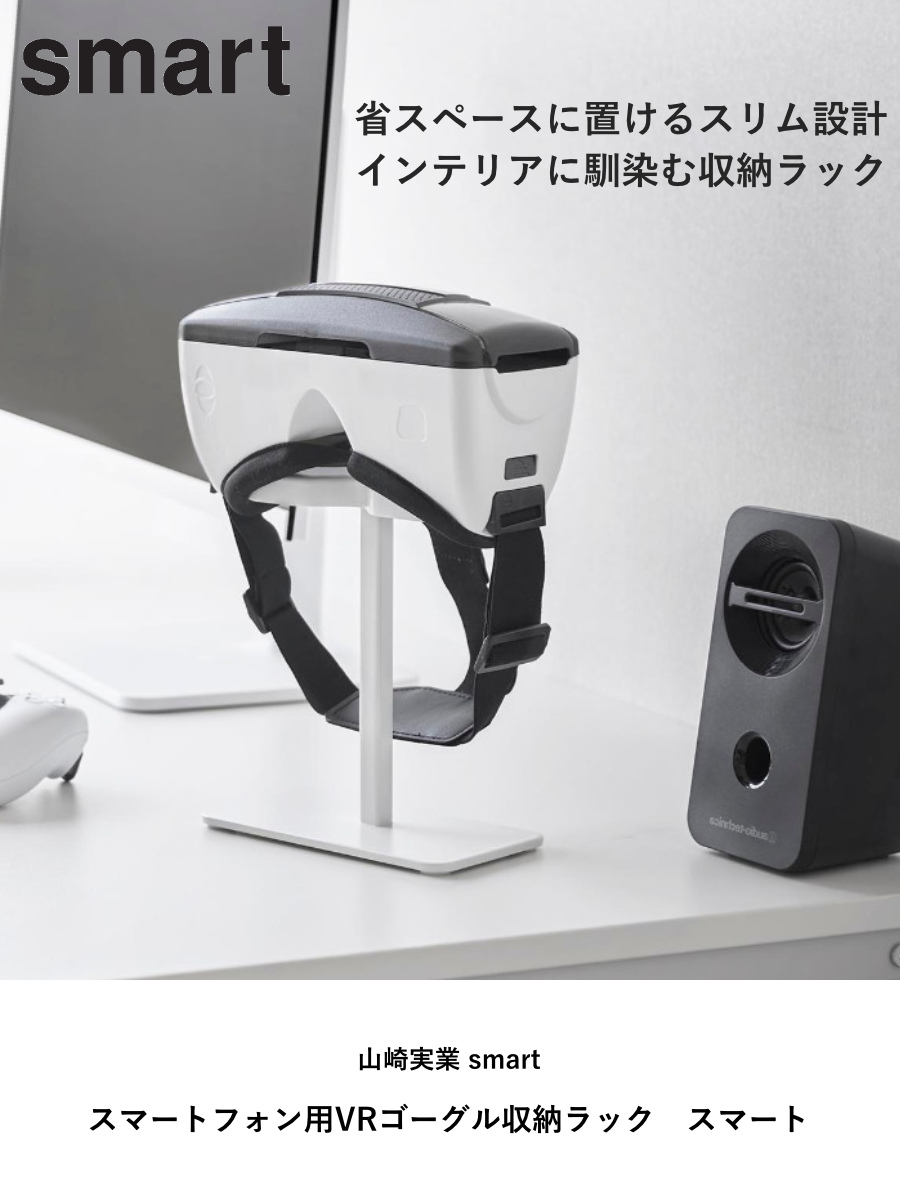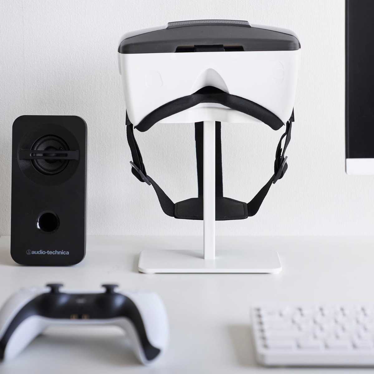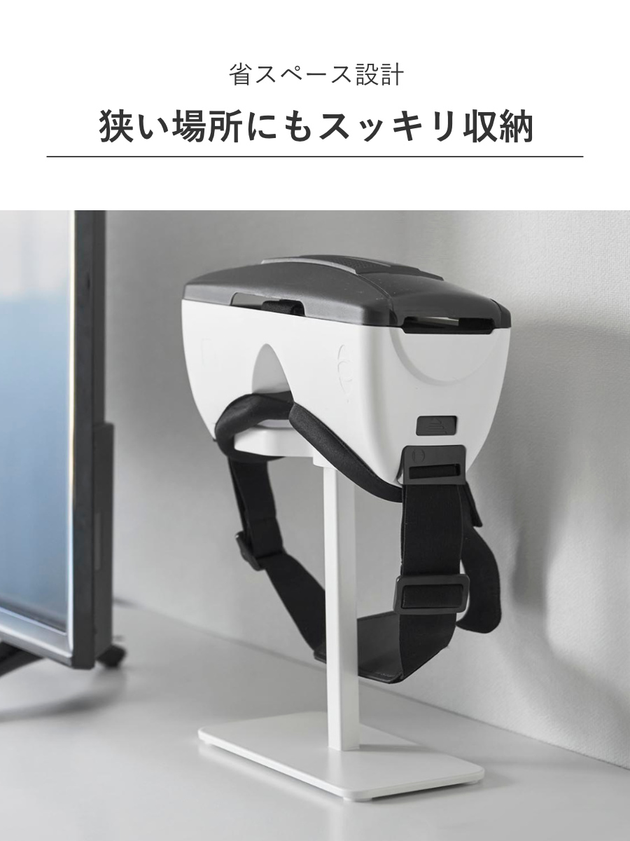 置き場所に困るスマートフォン用VRゴーグルをスリムに収納できる縦型ラックです。インテリアに馴染むシンプルなデザインです。