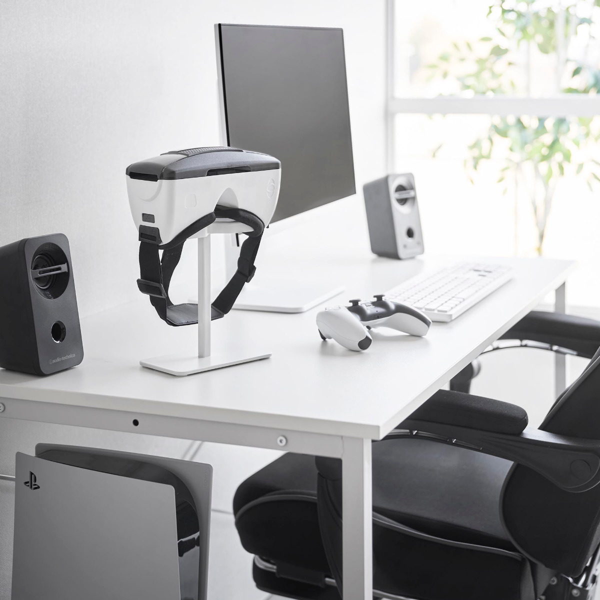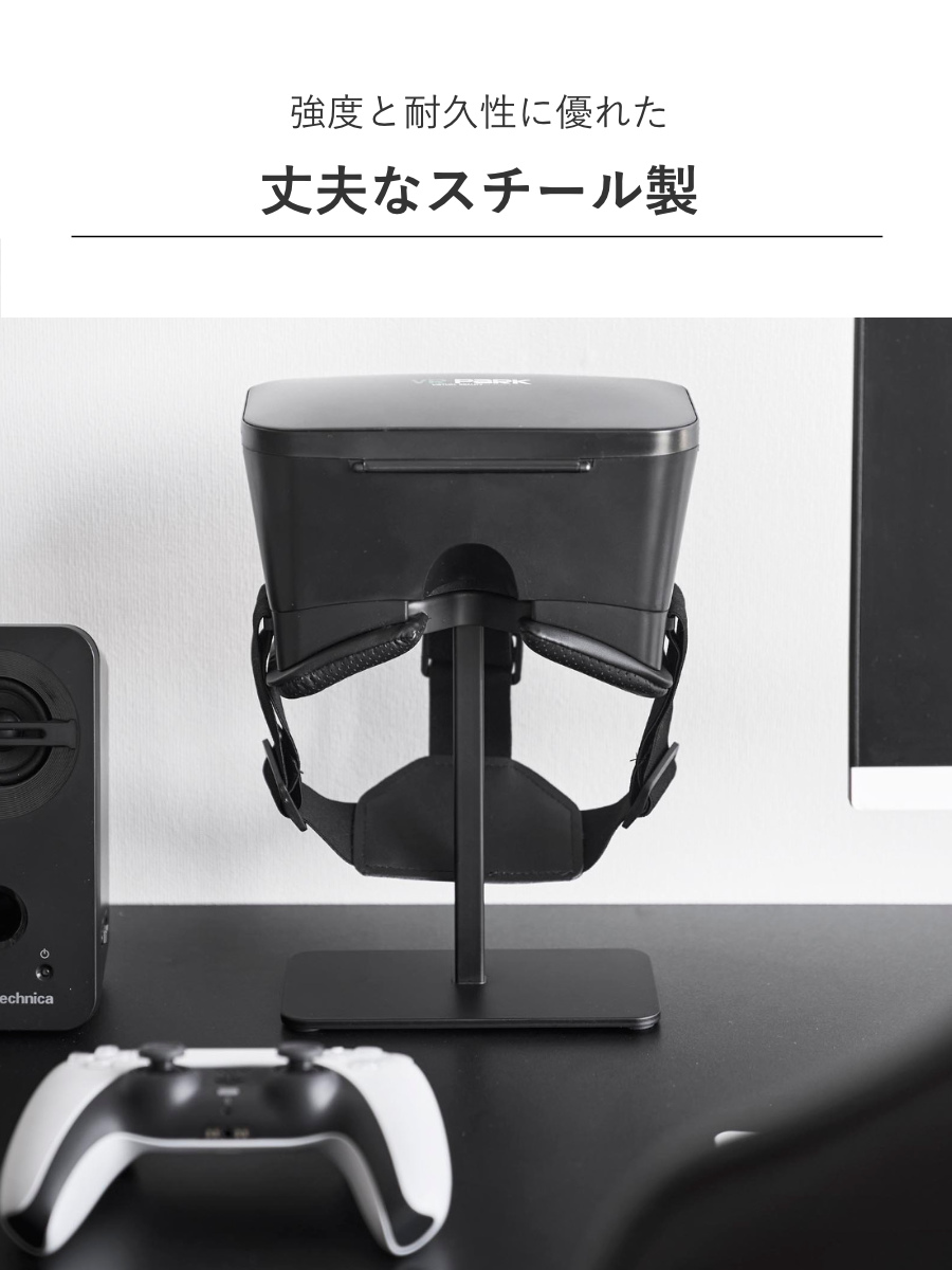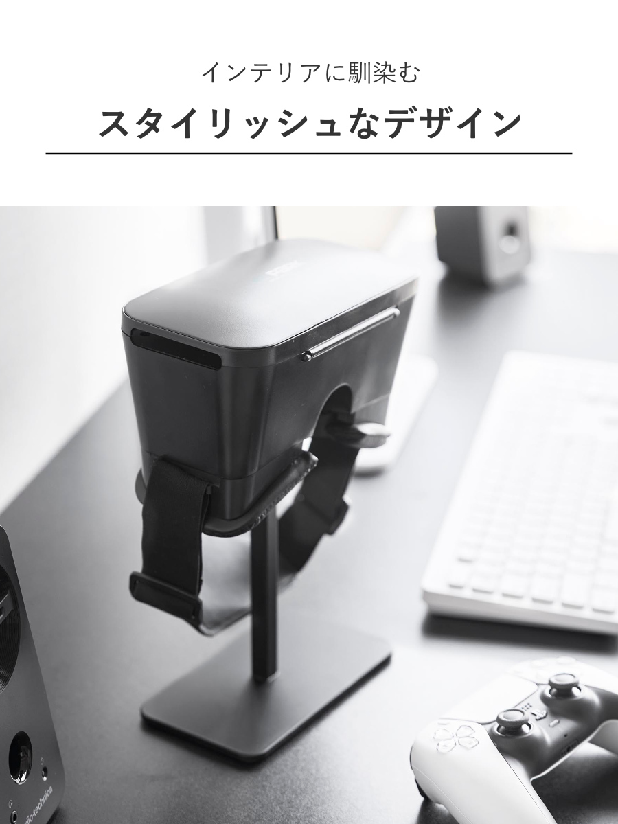置き場所に困るスマートフォン用VRゴーグルをスリムに収納できる縦型ラックです。インテリアに馴染むシンプルなデザインです。