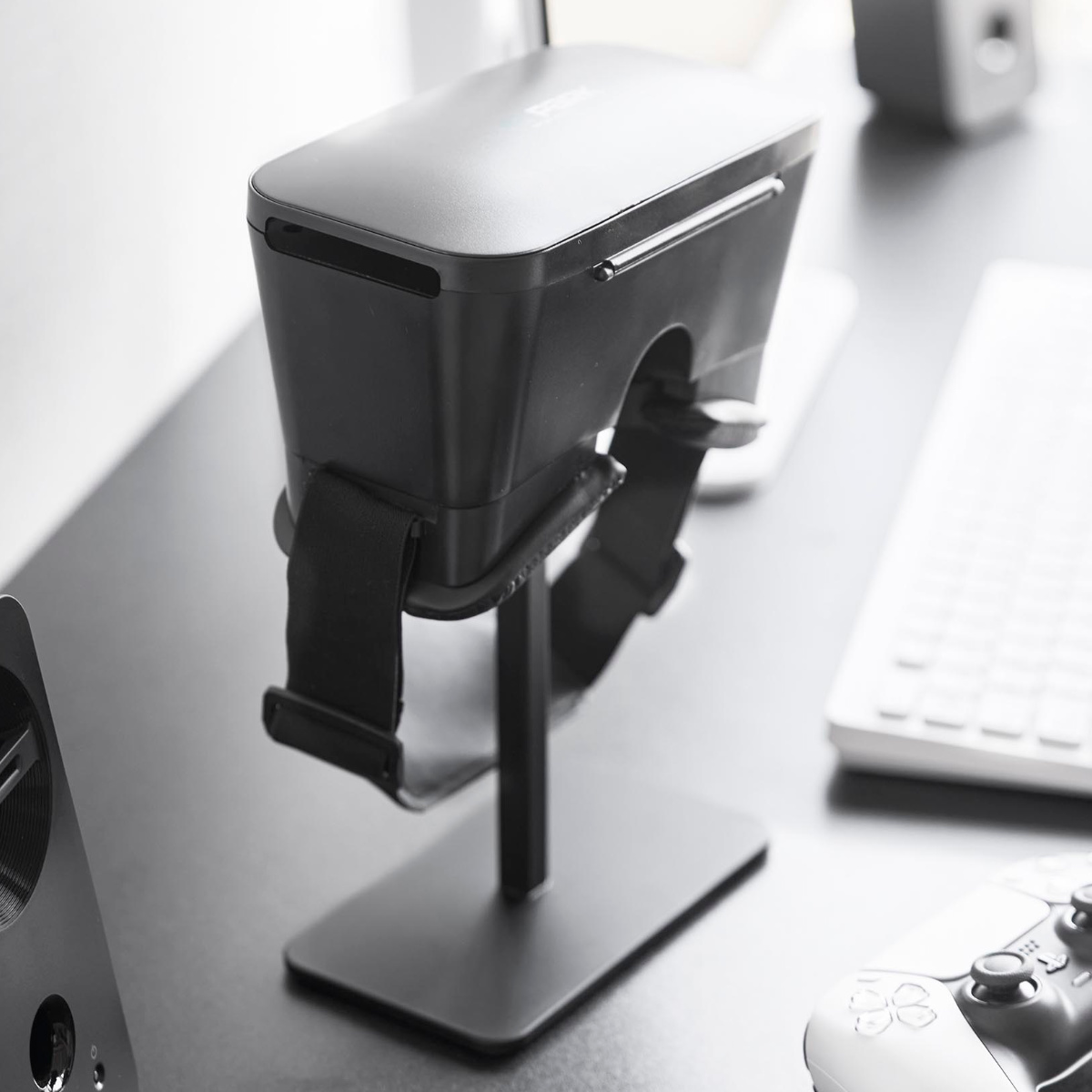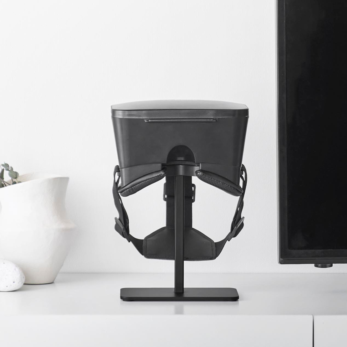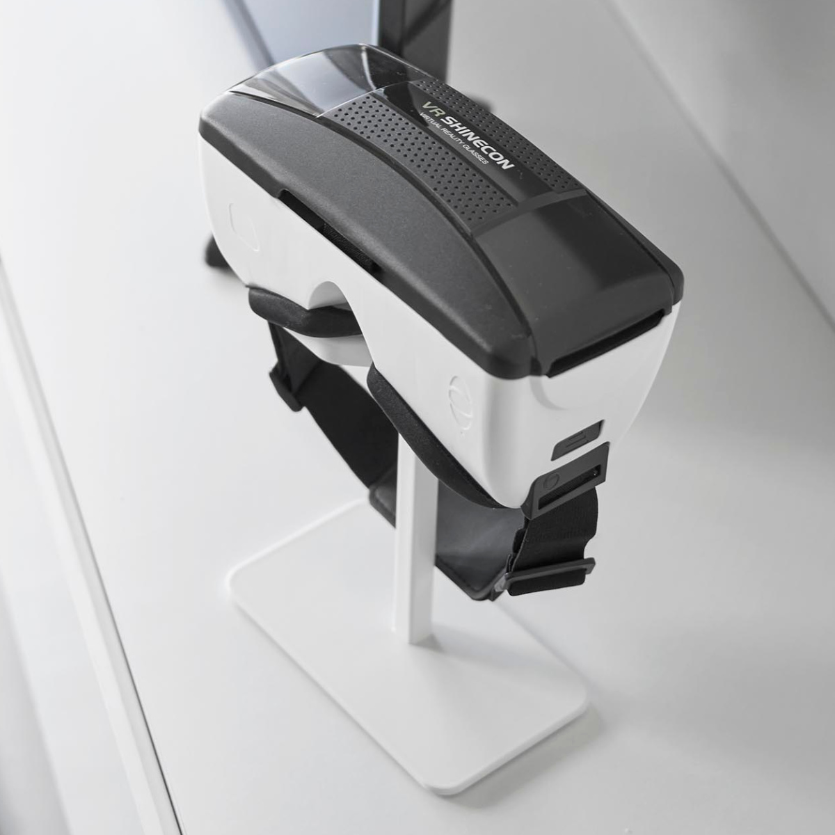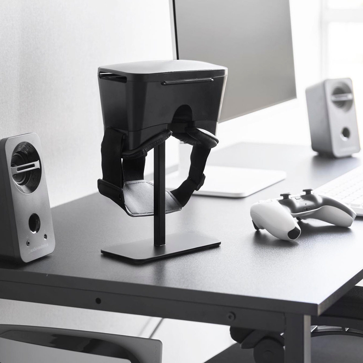 置き場所に困るスマートフォン用VRゴーグルをスリムに収納できる縦型ラックです。インテリアに馴染むシンプルなデザインです。