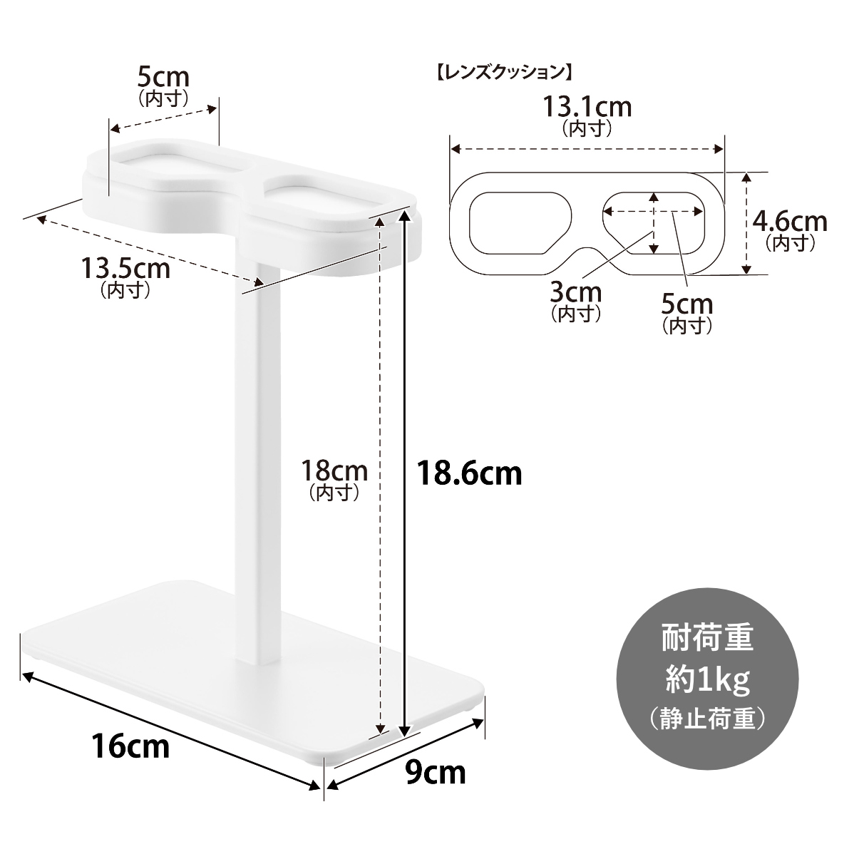 | 材質 | 本体:スチール(粉体塗装) レンズ用クッション:EVA樹脂 クッション:シリコーンゴム |