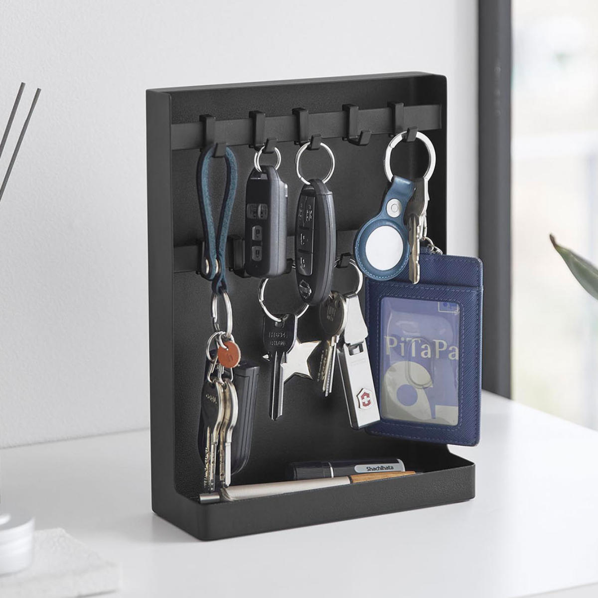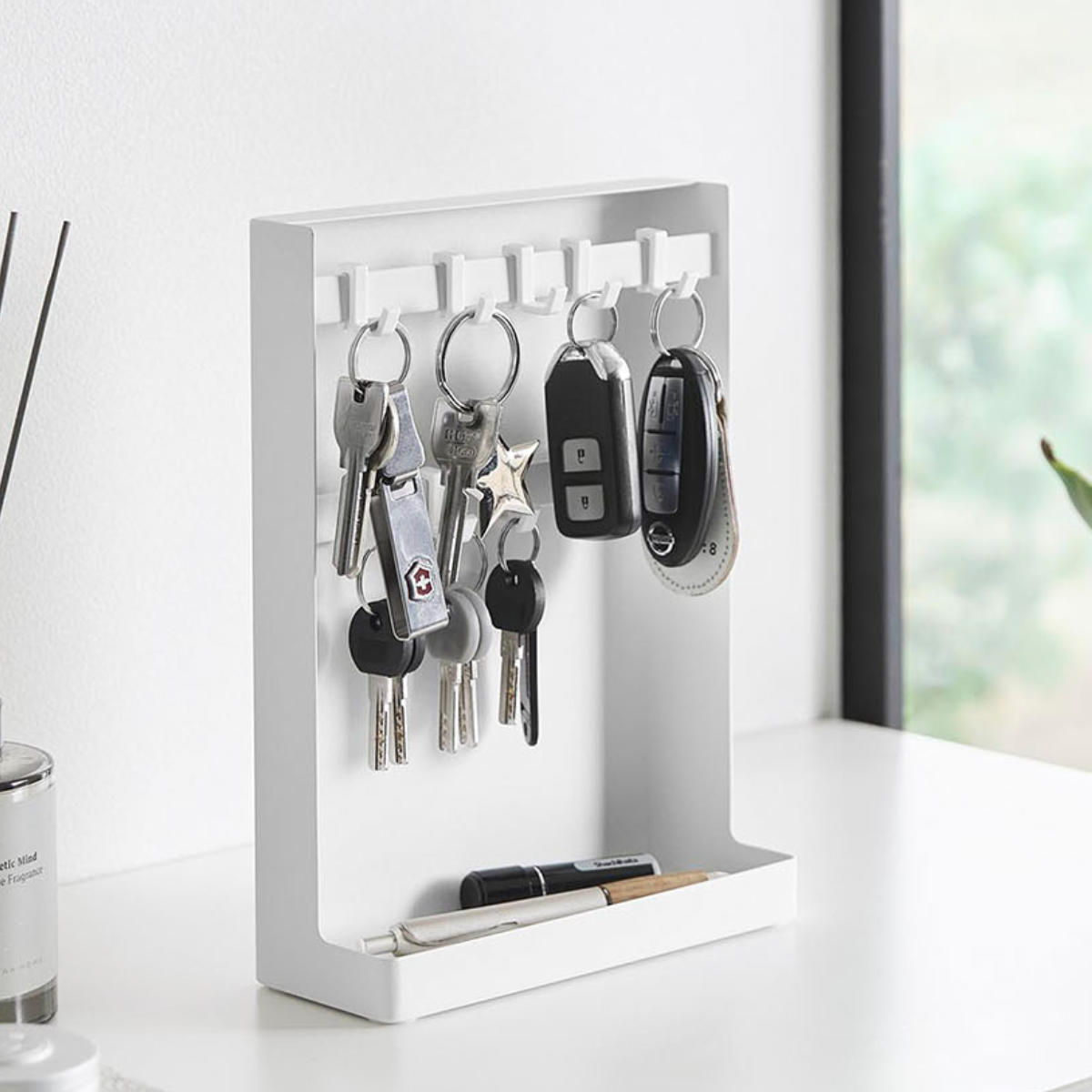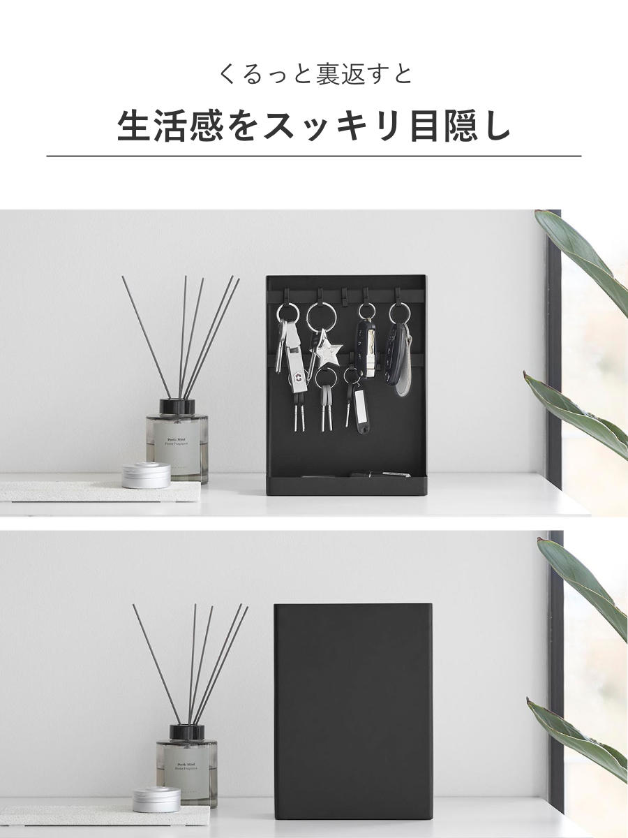 シンプルなデザインのキーフックスタンドです。スチール製で安定感と高級感があります。使わないときはクルッと回してサッと目隠しでき、玄関やリビングをよりスタイリッシュに演出します。