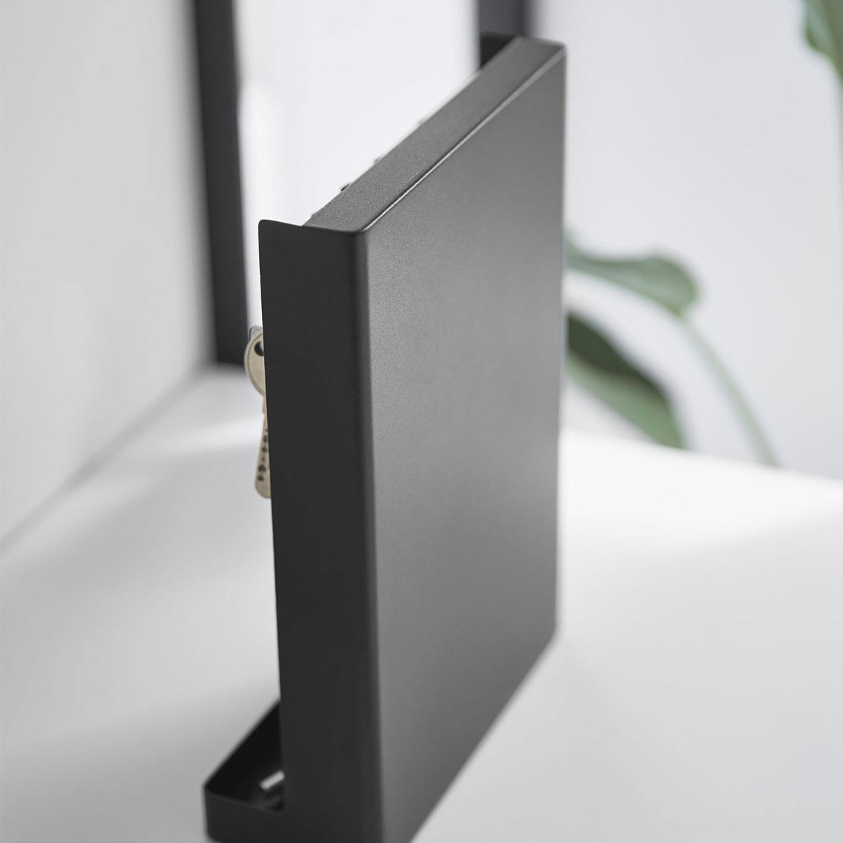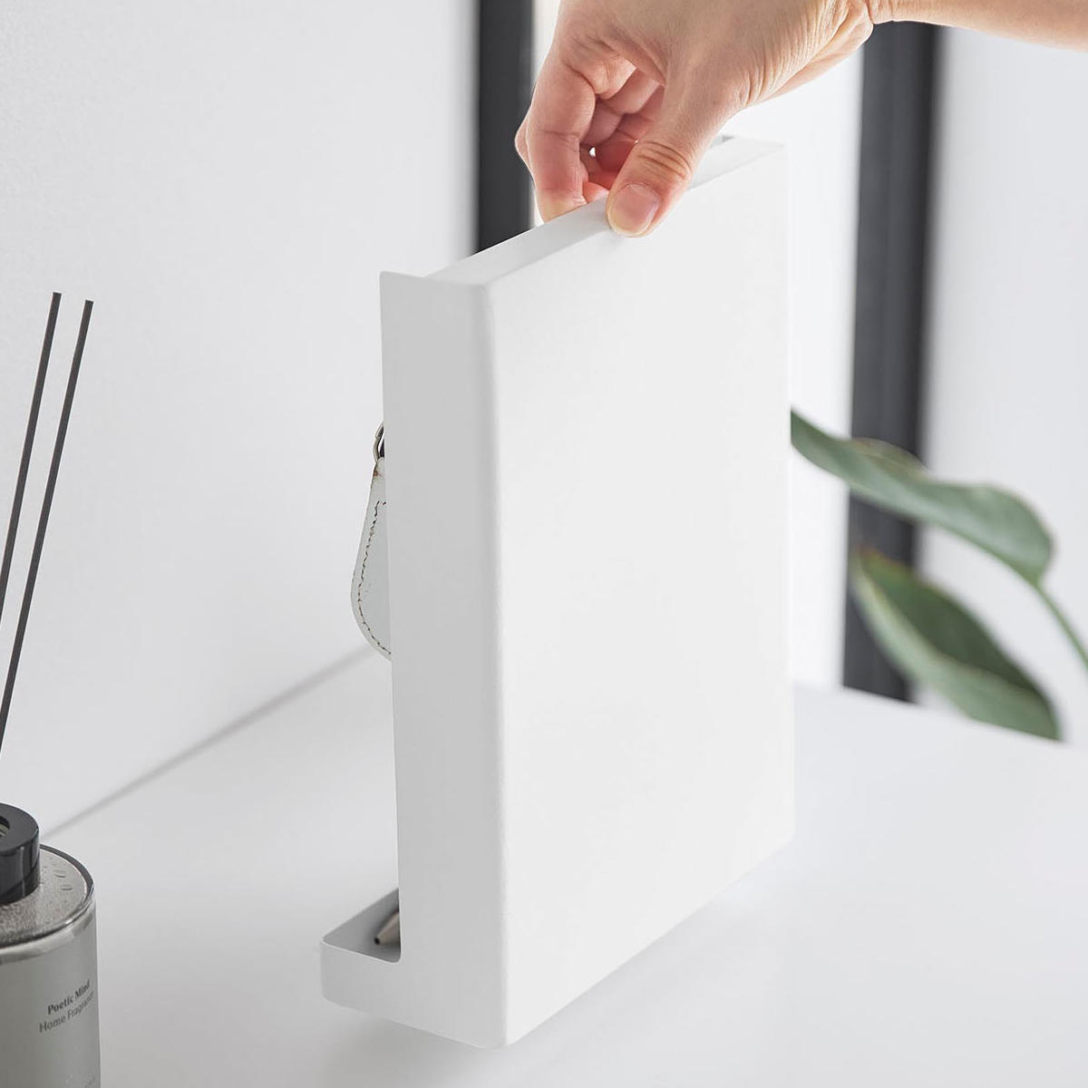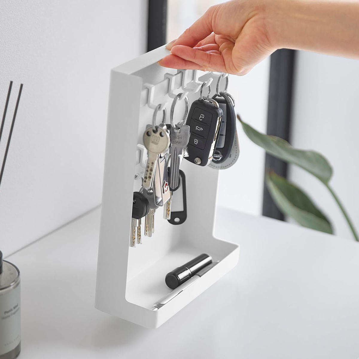 シンプルなデザインのキーフックスタンドです。スチール製で安定感と高級感があります。使わないときはクルッと回してサッと目隠しでき、玄関やリビングをよりスタイリッシュに演出します。