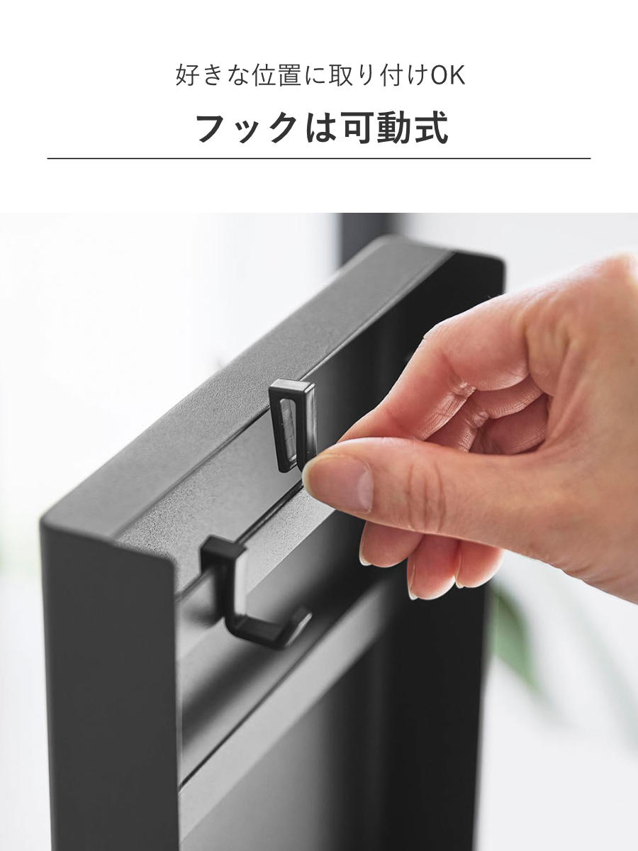 フックは可動式で、お好みの位置にレイアウト可能です。フックは10個付属しています。