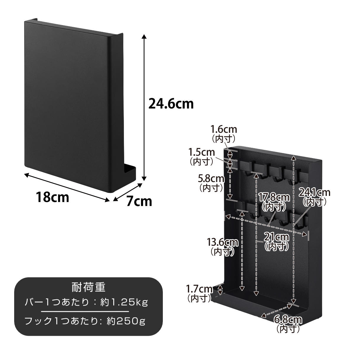 | 耐荷重 | バー1つあたり:1.25kg フック1つあたり:250g(静止荷重) |