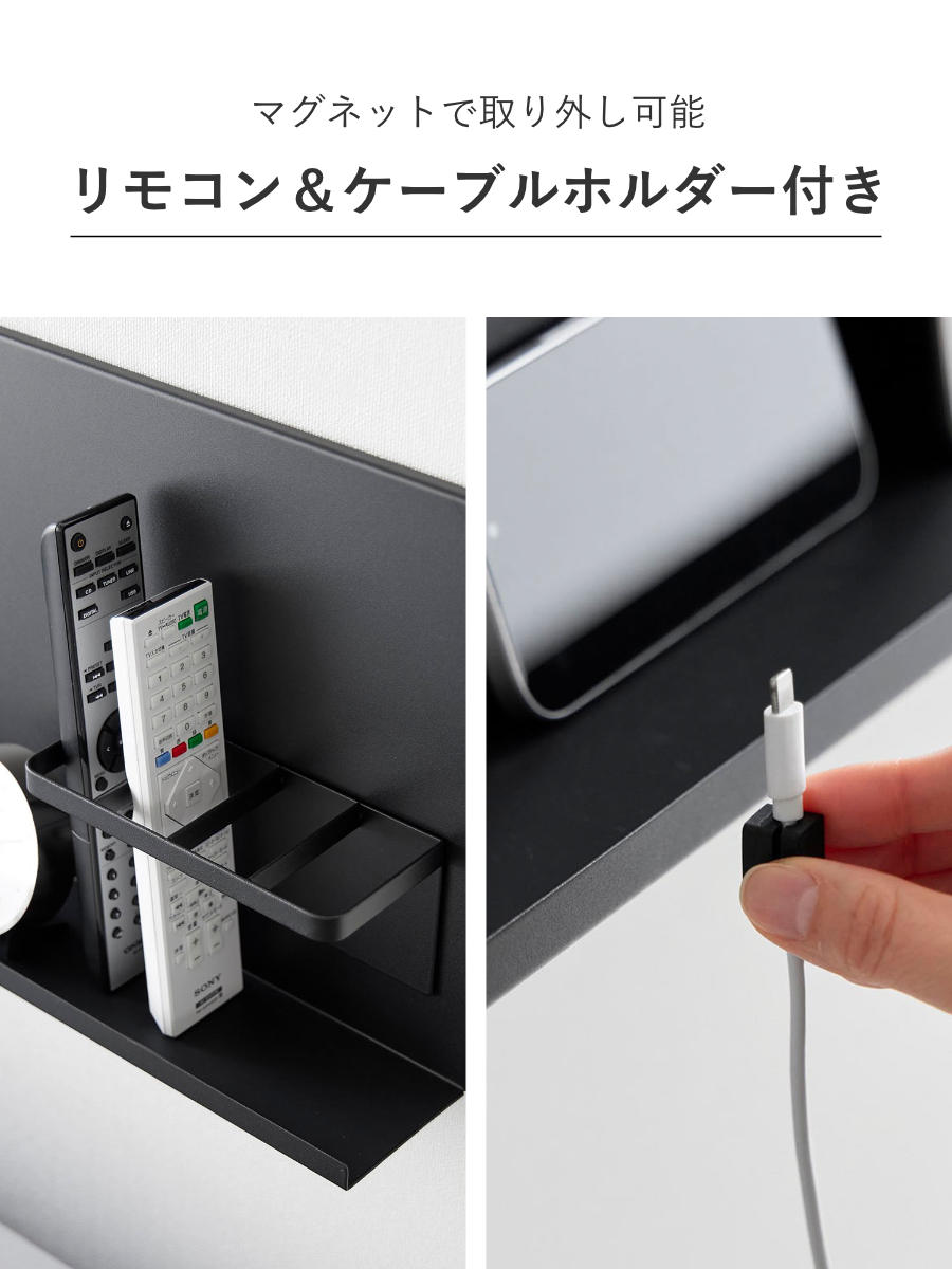 リモコンホルダーや付属のマグネットケーブルホルダーは、マグネット式でお好みの位置に設置可能です。