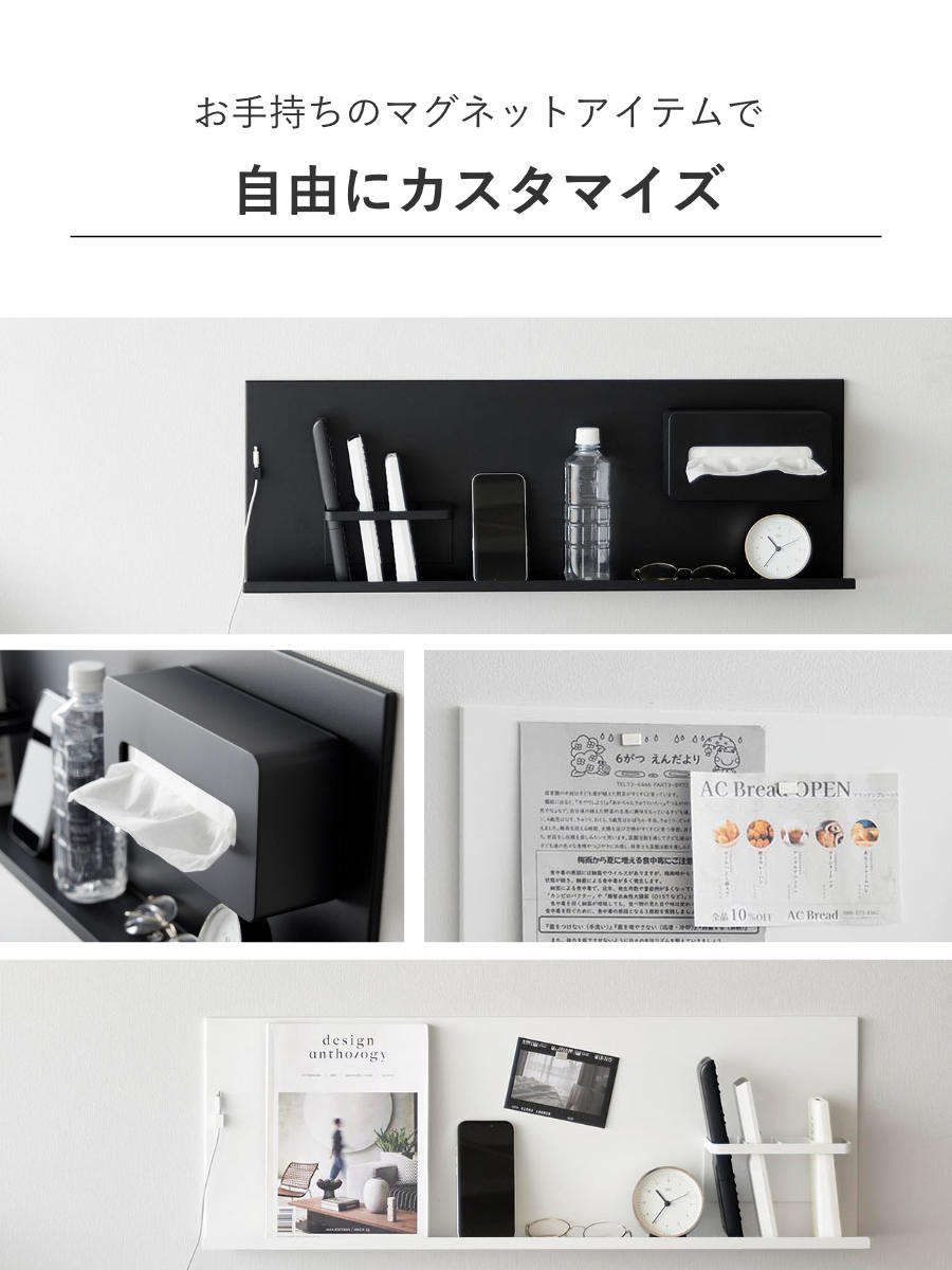 強力なスチールパネルなので、お手持ちのマグネットアイテムを取り付けることができます。マグネットのティッシュケースや学校・大切なお便りなどを、自由にレイアウトできます。