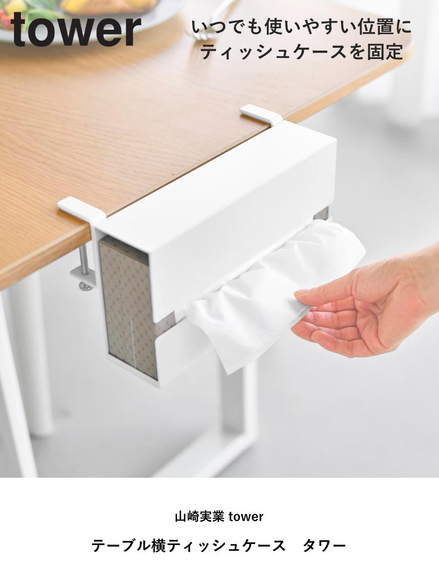 調節ネジでテーブル横に簡単に取り付けられるティッシュケースです。置き場所に困るティッシュに「指定席」を作れるので、テーブルまわりがすっきり片付きます。必要な時にはサッと取り出せて便利です。