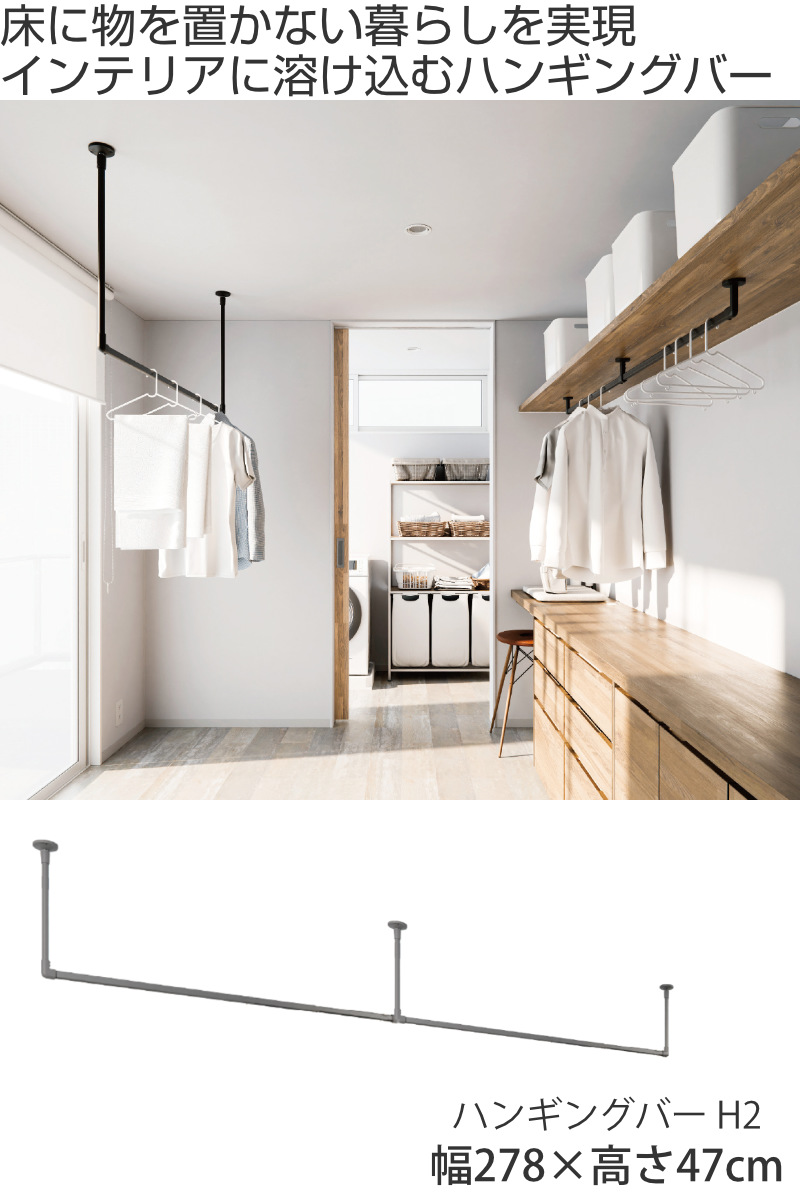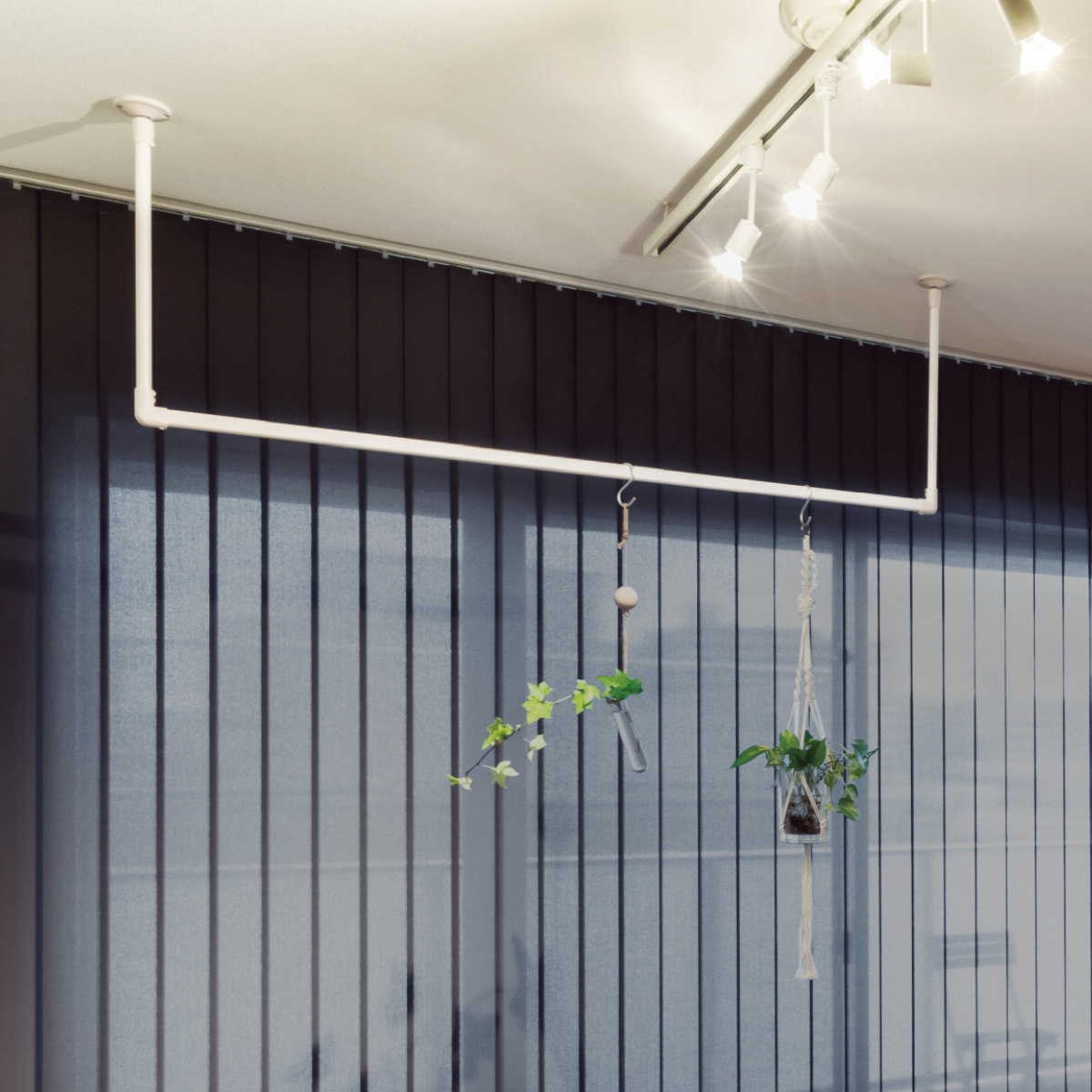 モノトーンのハンギングバーは、マットな質感に仕上げられているためインテリア性が高く、ランドリーやリビング、ウォークインクローゼットなどへも設置できます。洗濯物を干す用途だけでなく、収納スペースの確保やディスプレイバーとしての使用もお勧めです。