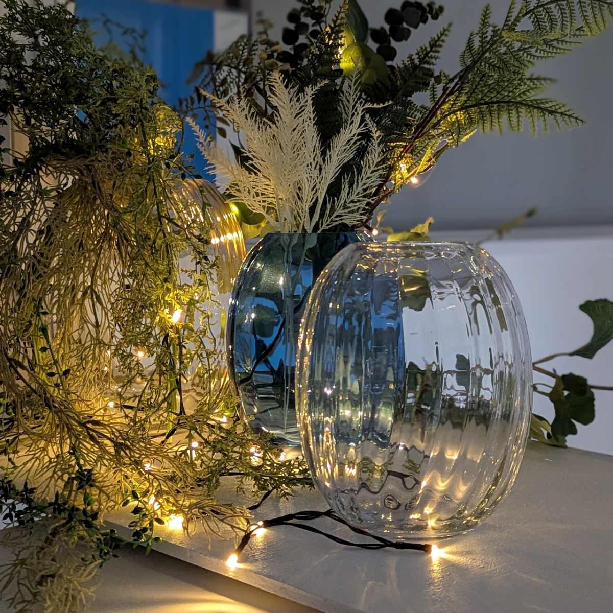 透明感のあるガラスが光を取り込み、花やグリーンの色を引き立てます。