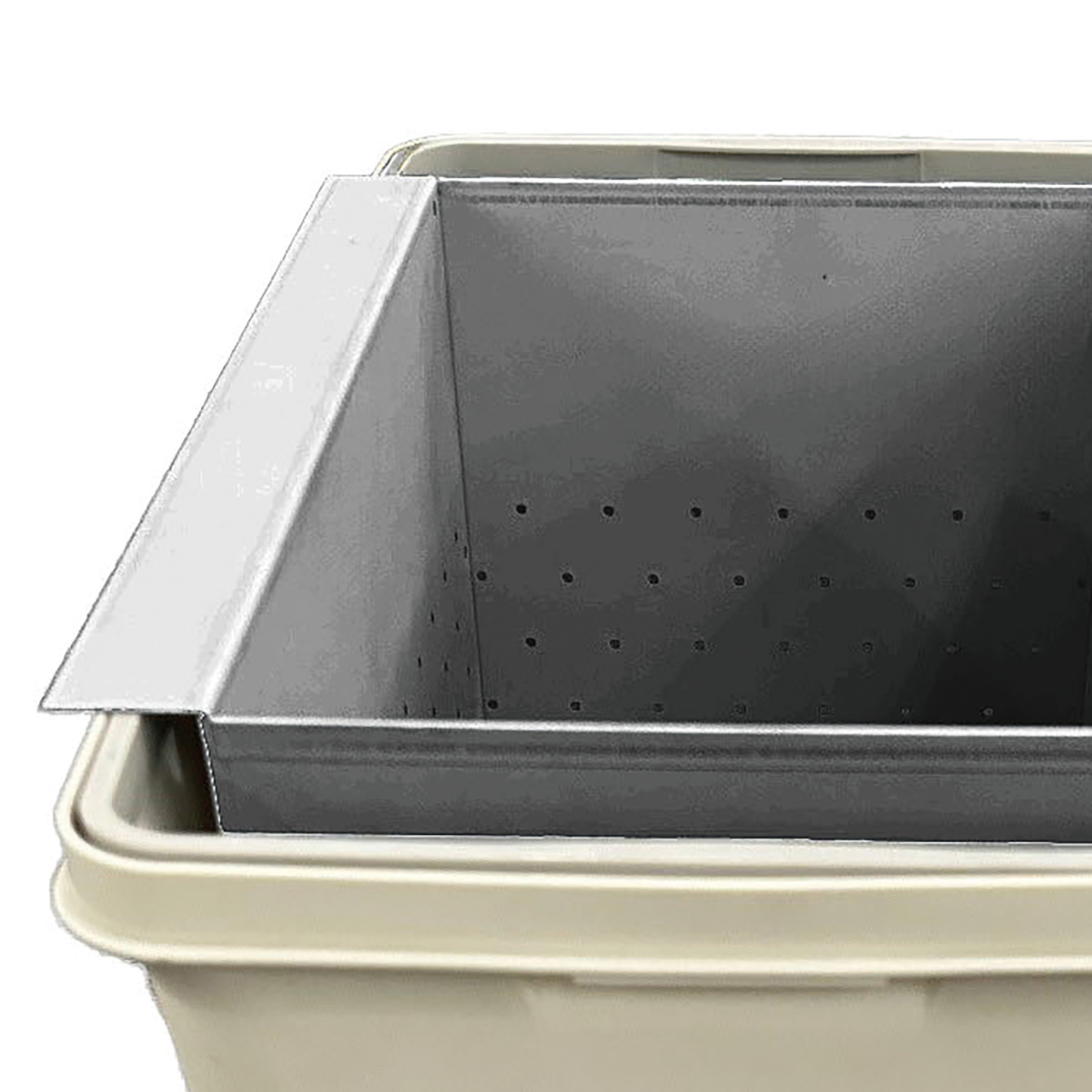 ステンレス製の水切りバスケット付きで液体や汁物も簡単に分離、衛生的に管理します。バスケットを上げれば余分な水分だけが下の容器に落ち、液体ごみと固形ごみを分けて処理が可能です。