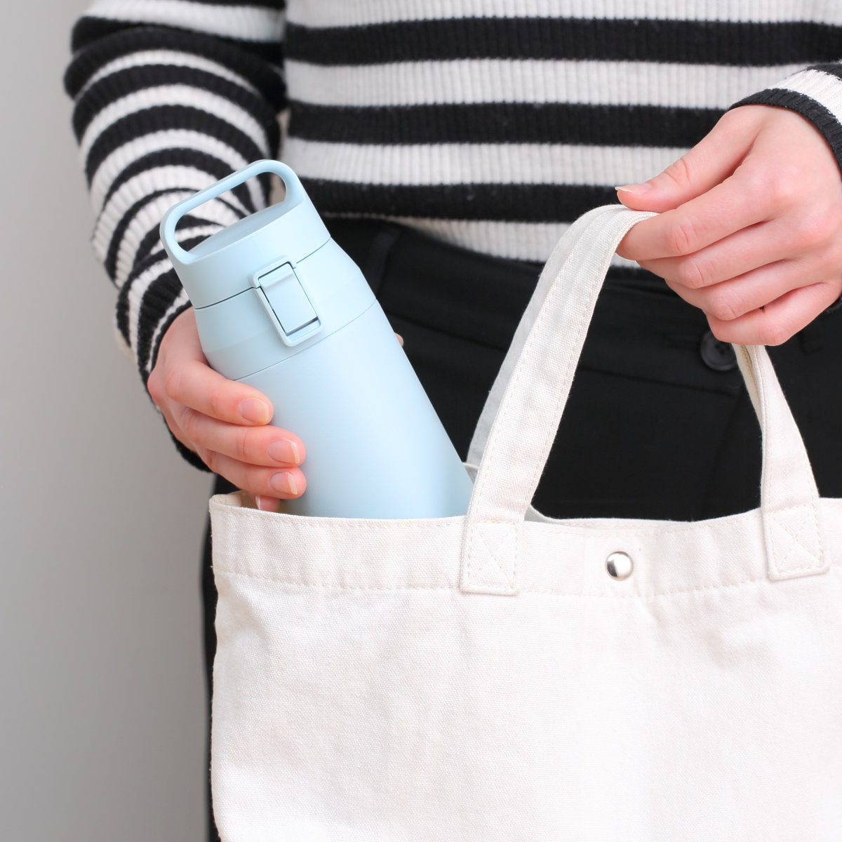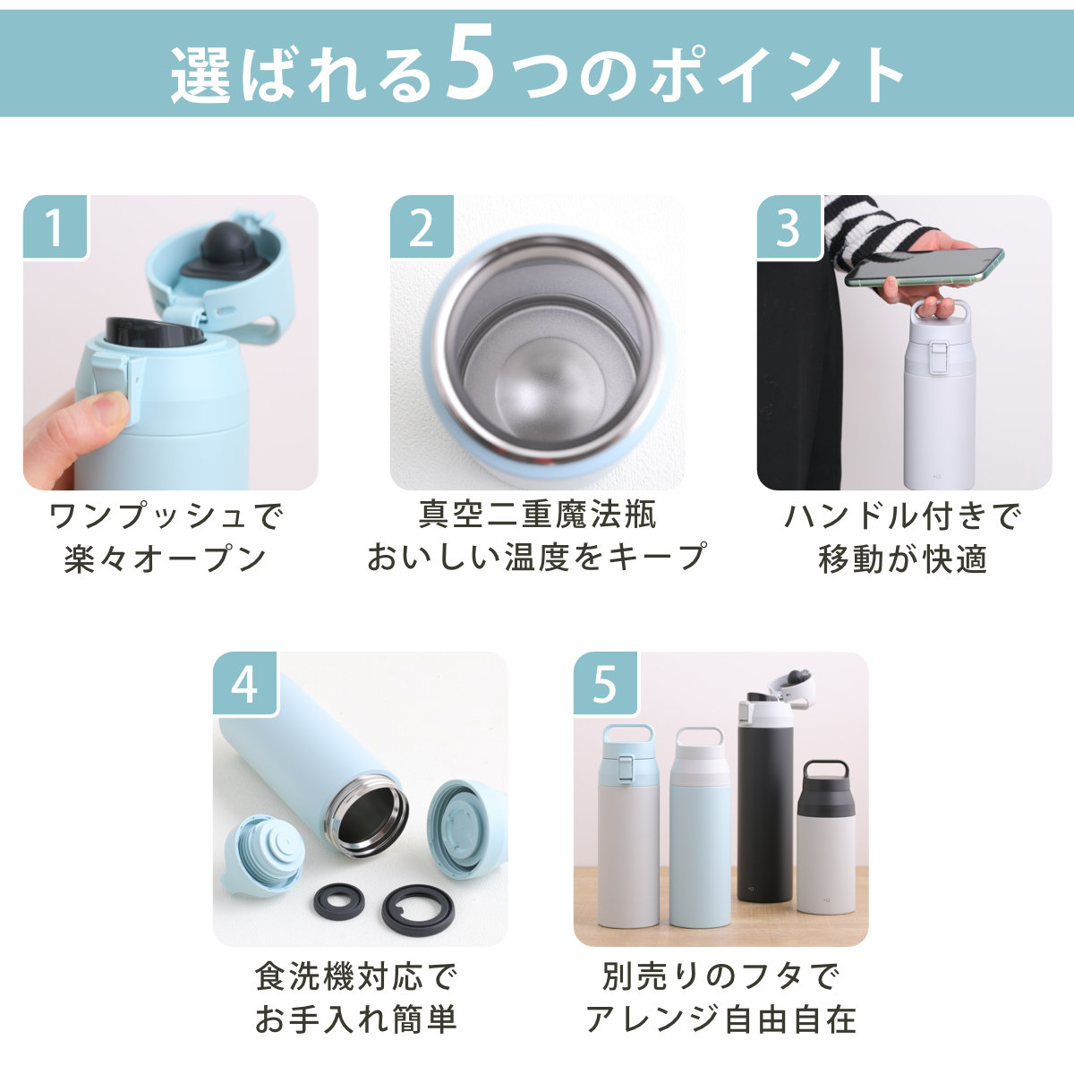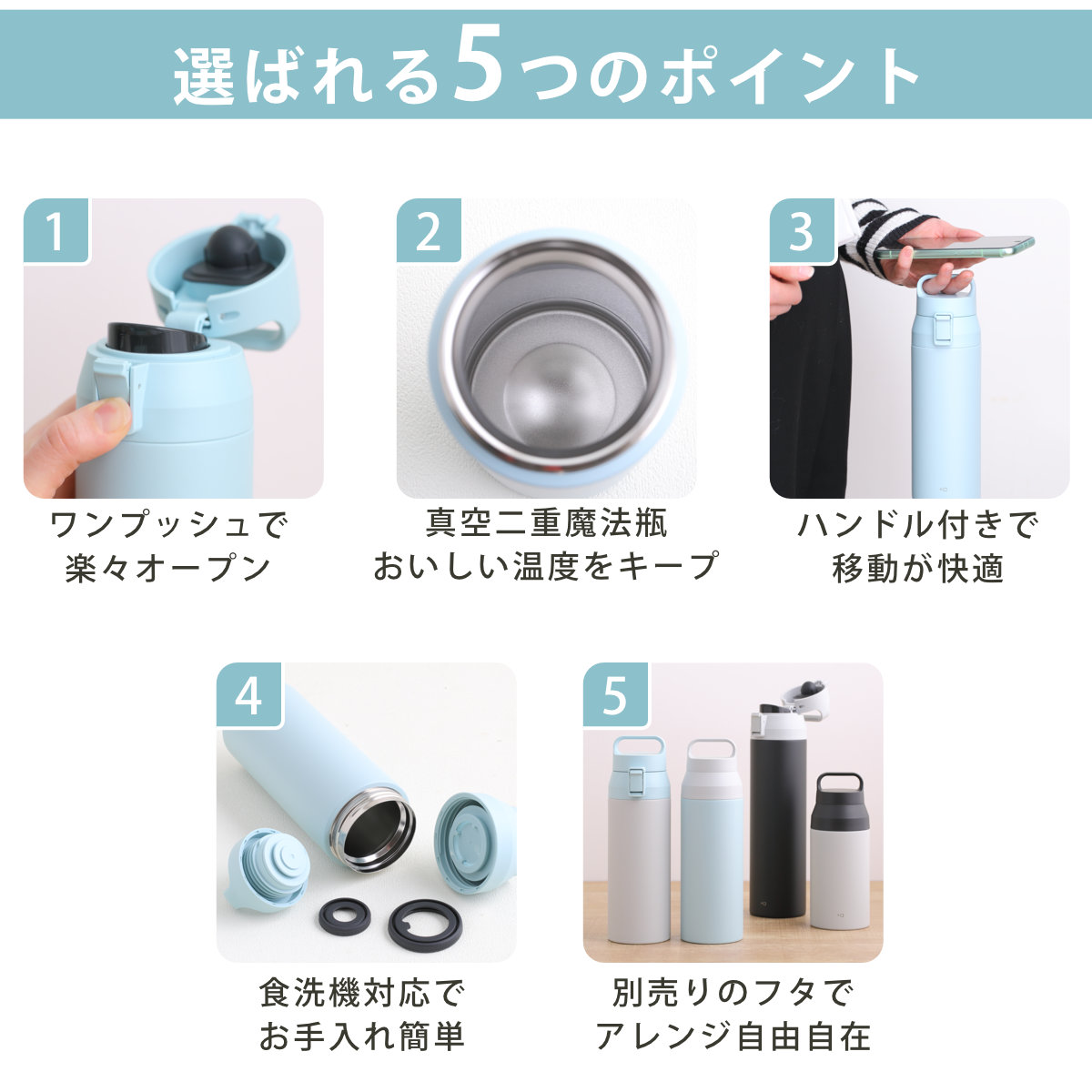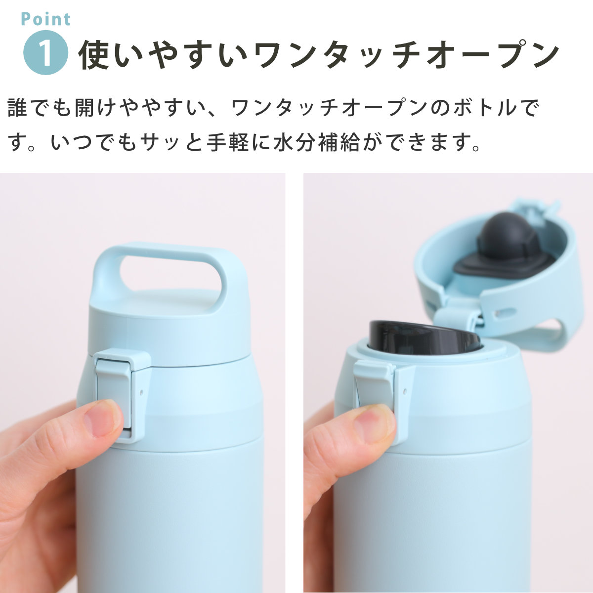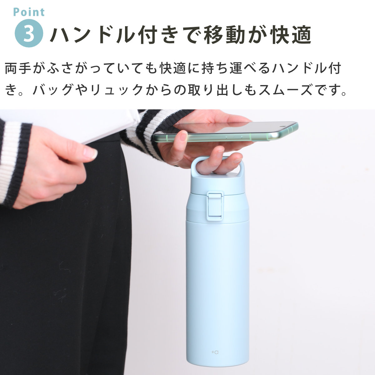サッと飲めるワンプッシュ、ハンドル付きで持ち運びも楽々