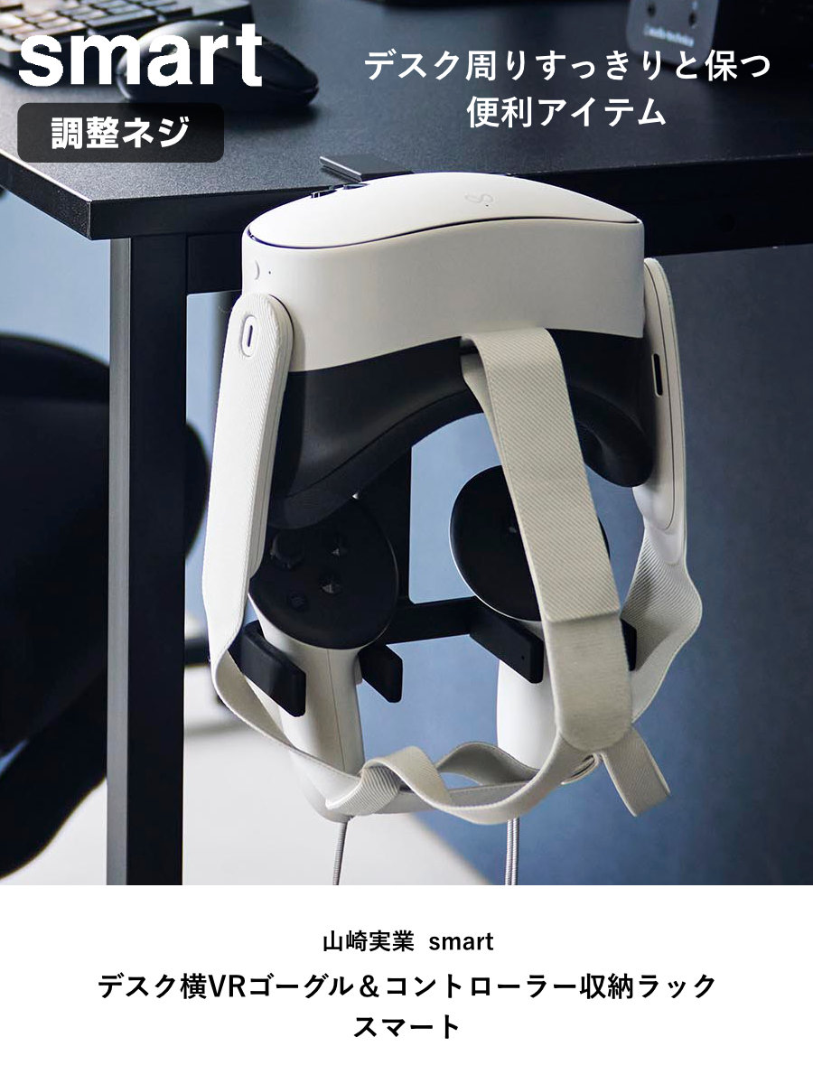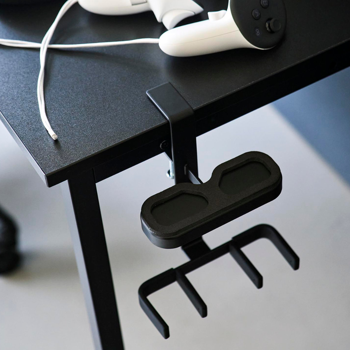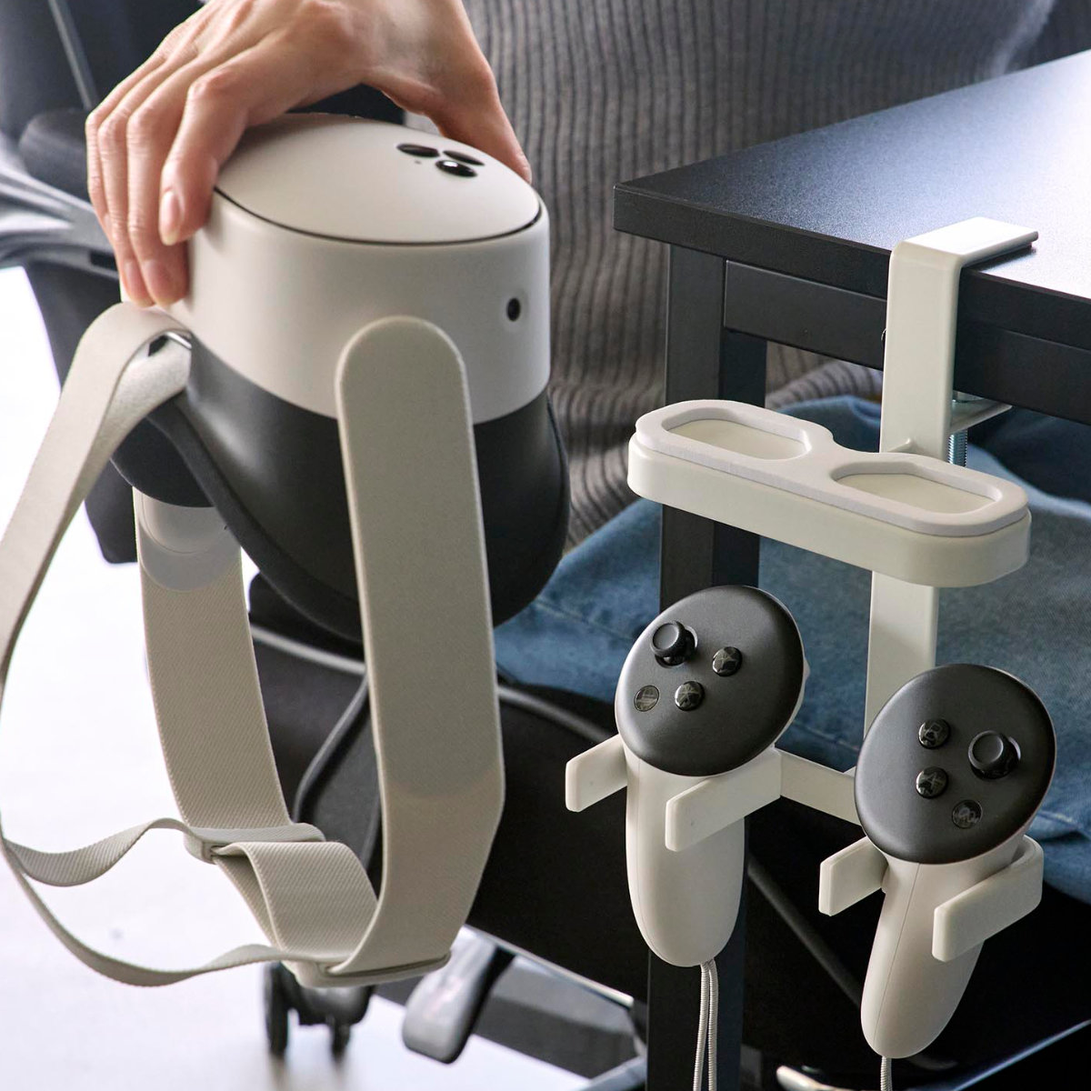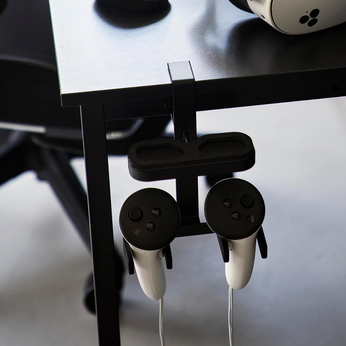 デスク横に設置できるVRゴーグルとコントローラー用の収納ラックは、VR機器を整理し、デスク周りをすっきりと保つための便利なアイテムです。