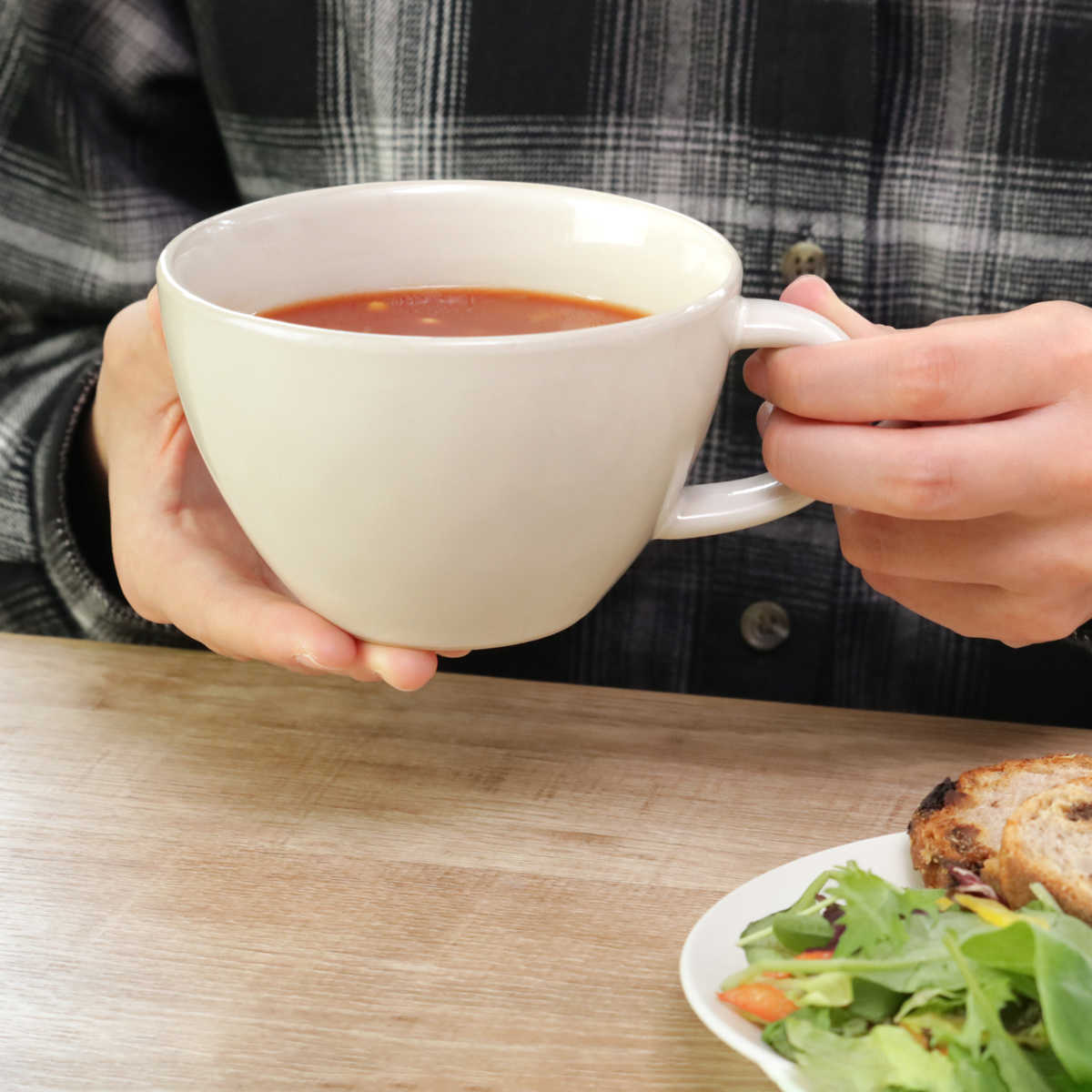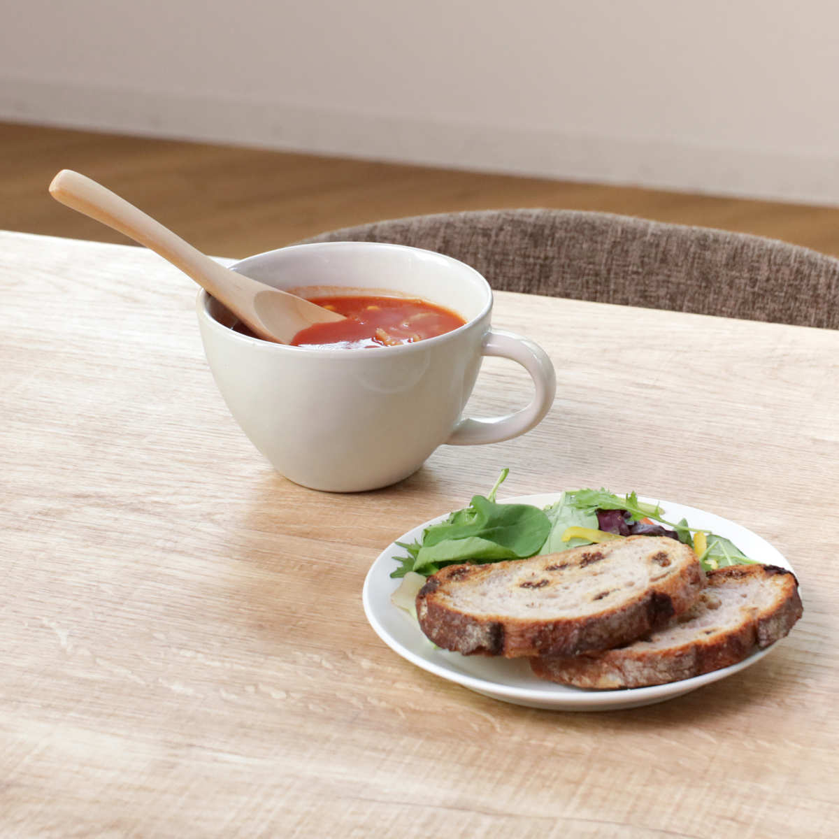 具沢山のスープやシチューにぴったりなスープカップです。あたたかみを感じる素朴な雰囲気で、飽きのこない長く付き合えるデザイン。カフェオレやシリアルを入れれば朝食でも活躍します。