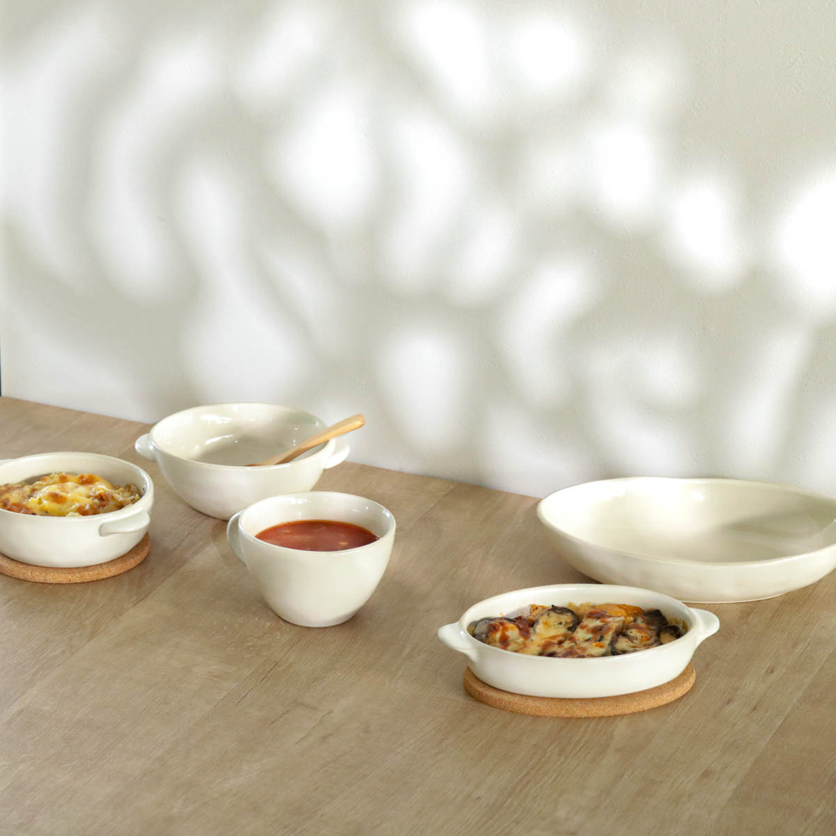 手作り感溢れるテーブルウェア「ほっくり」シリーズ。ナチュラルで優しい風合いは、テーブルを温かく演出します。スープ、カレー、グラタンなど、それぞれの料理で使いやすいアイテムです。