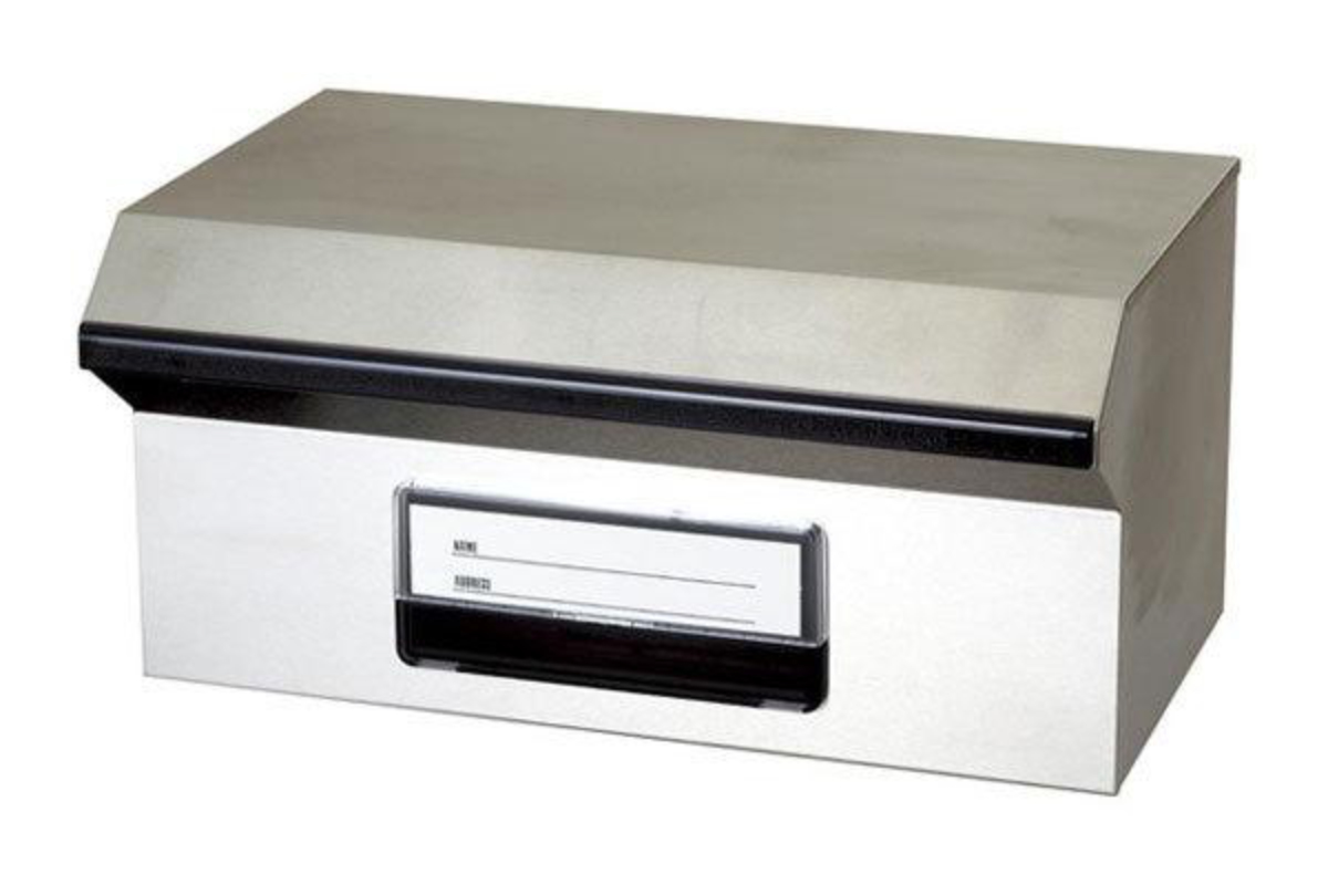 また、投函口が前面、取出口が後ろにある、前入れ後出し仕様です。郵便物を取り出す際、前に回りこまず後ろ側から取り出せて便利です。