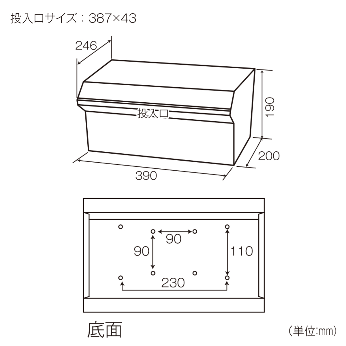 投函口:約 幅38.7×高さ4.3(cm)