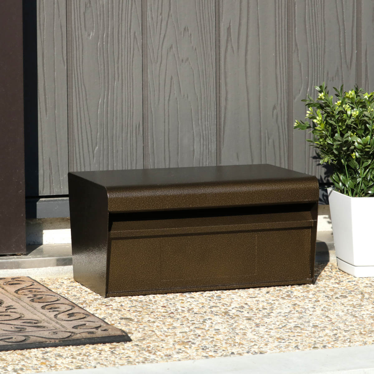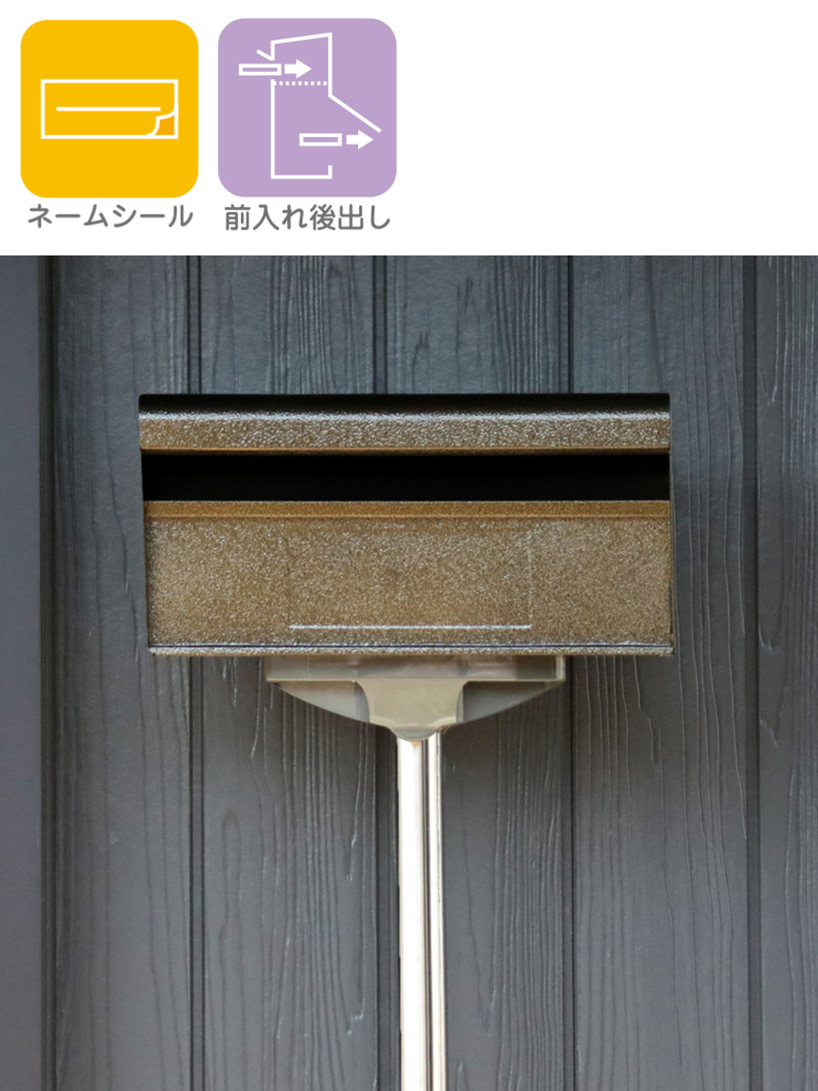 どんな外観にも馴染みやすいエンボスブラウンカラーのシンプルな郵便ポストです。耐久性に優れたスチール鋼板製、シンプルな使いやすさが魅力です。