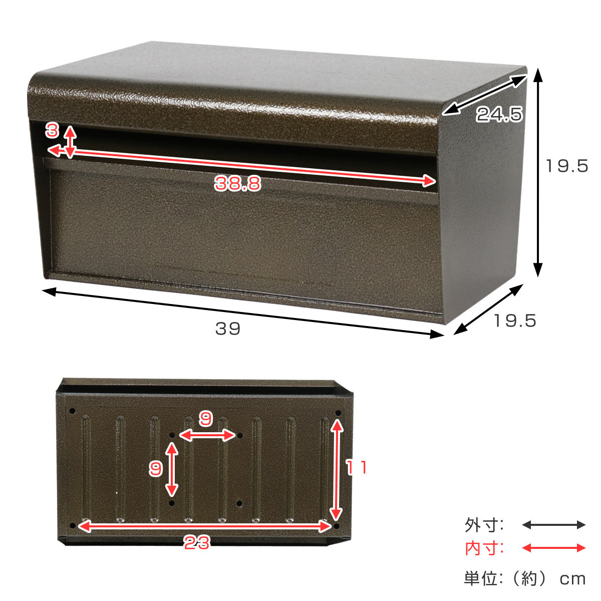 | サイズ | 約 幅39×奥行24.5×高さ19.5(cm) 投入口:約 幅38.8×高さ3(cm) |