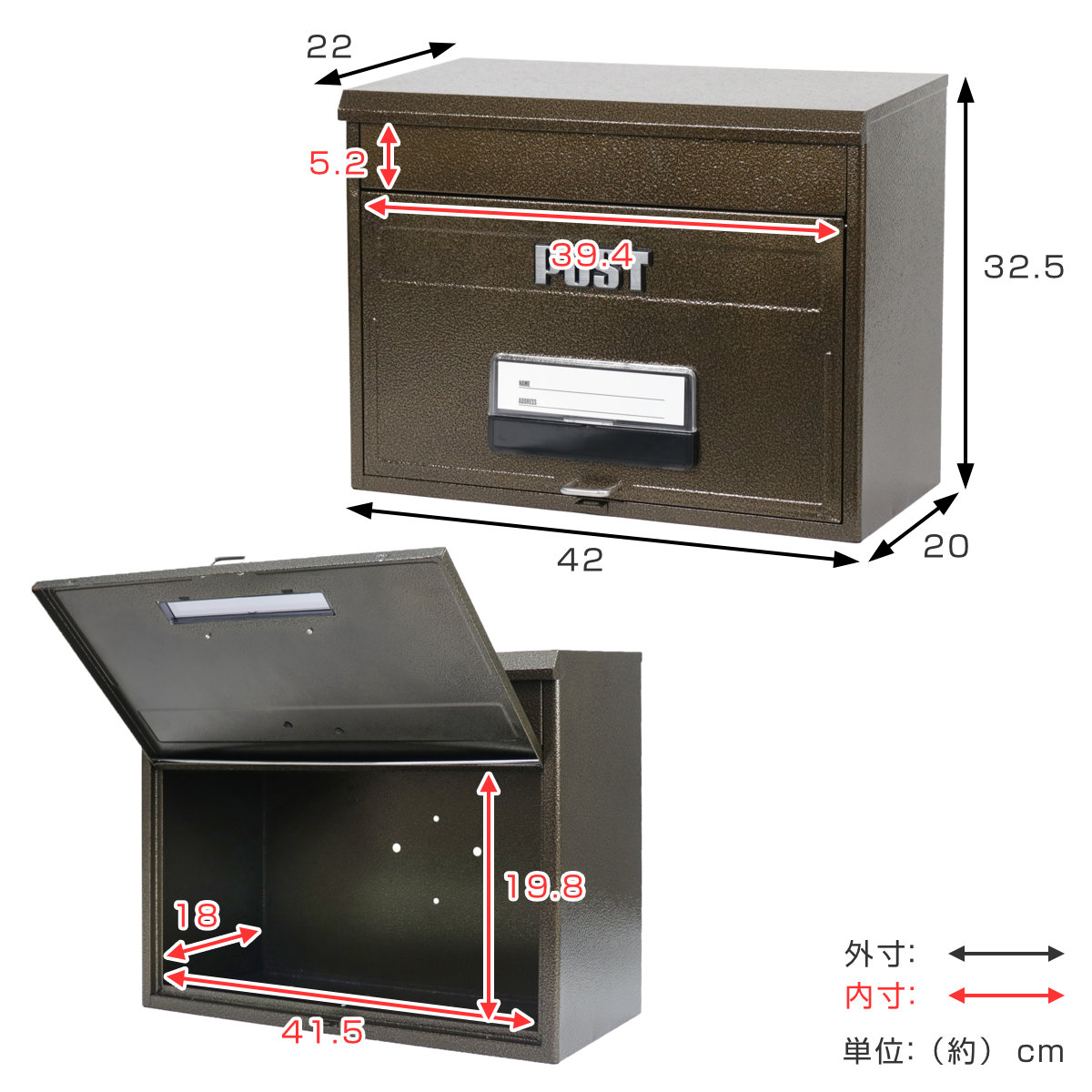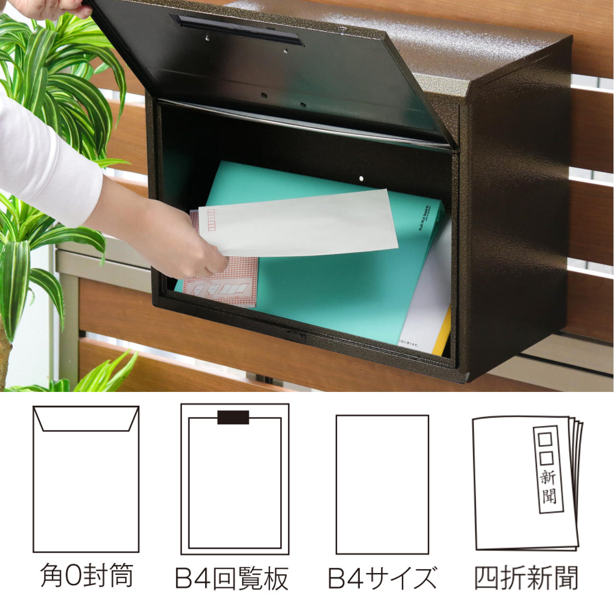 メール便をよく利用される方や不在時に回覧板が届く、郵便物が多い事務所やお家に最適な大容量どでかポストです。耐久性に優れたスチール鋼板製なので丈夫で長くお使いいただけます。