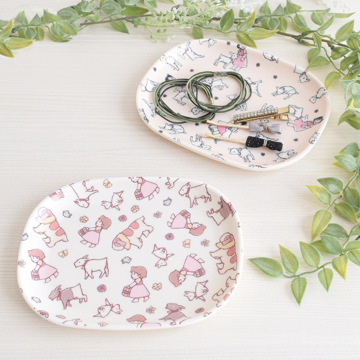 可愛いハイジのデザインが目を惹く布張りアクセサリートレイ。プリント布地を使用し、表面はコーティング加工で水洗いも可能です。指輪・時計・ピアスなどアクセサリーの整理・ディスプレイにピッタリなサイズです。自分用にはもちろん、プレゼントにもおすすめです。