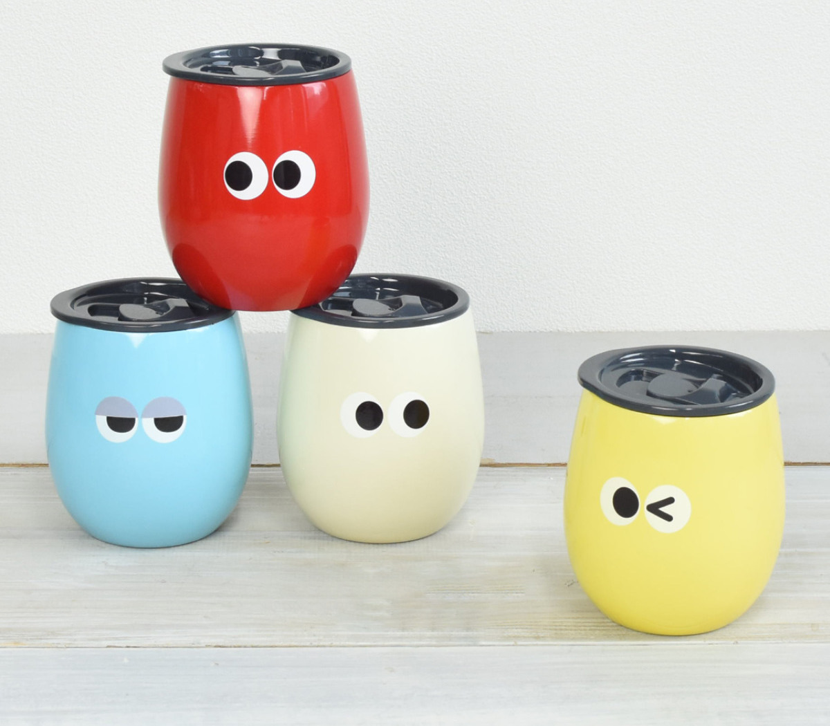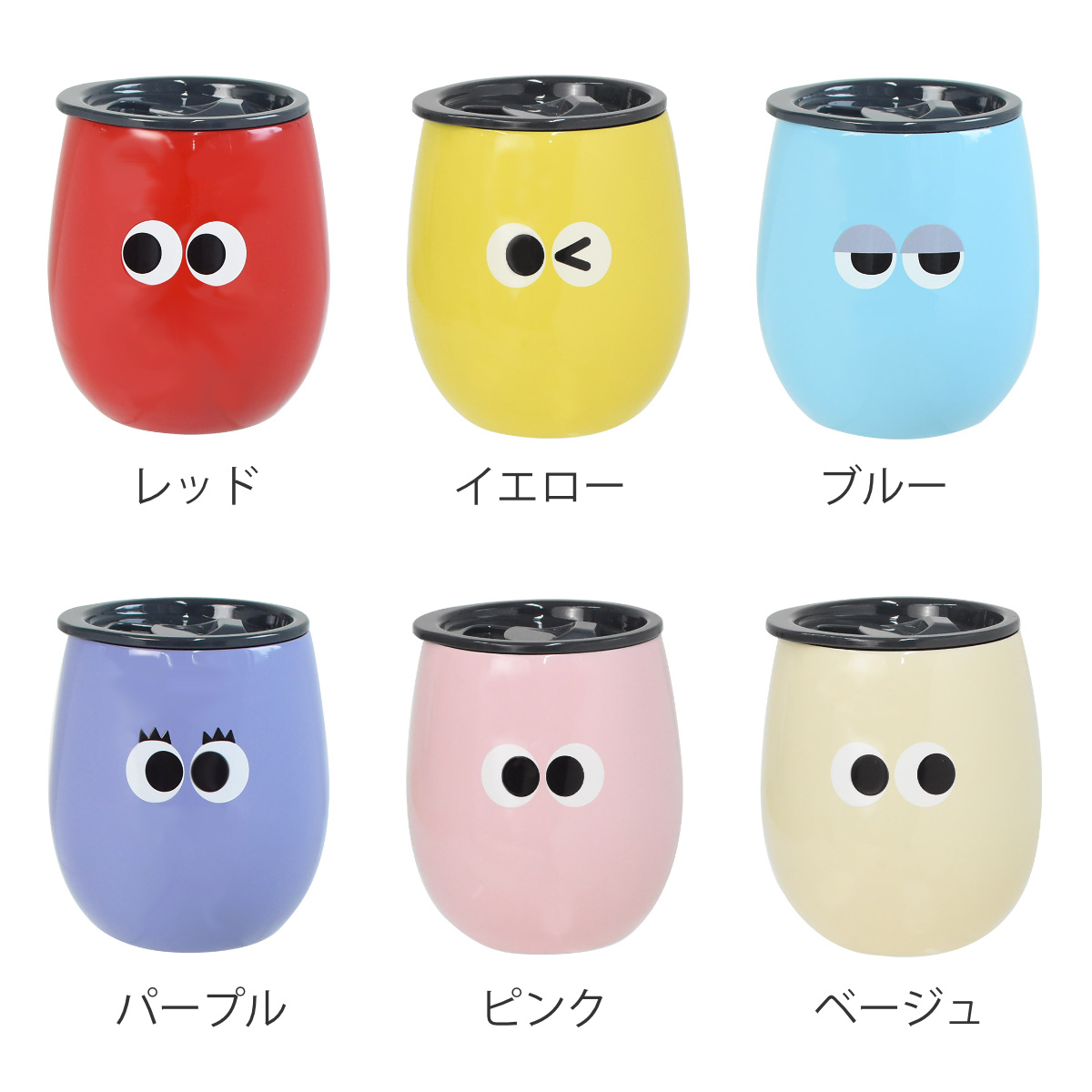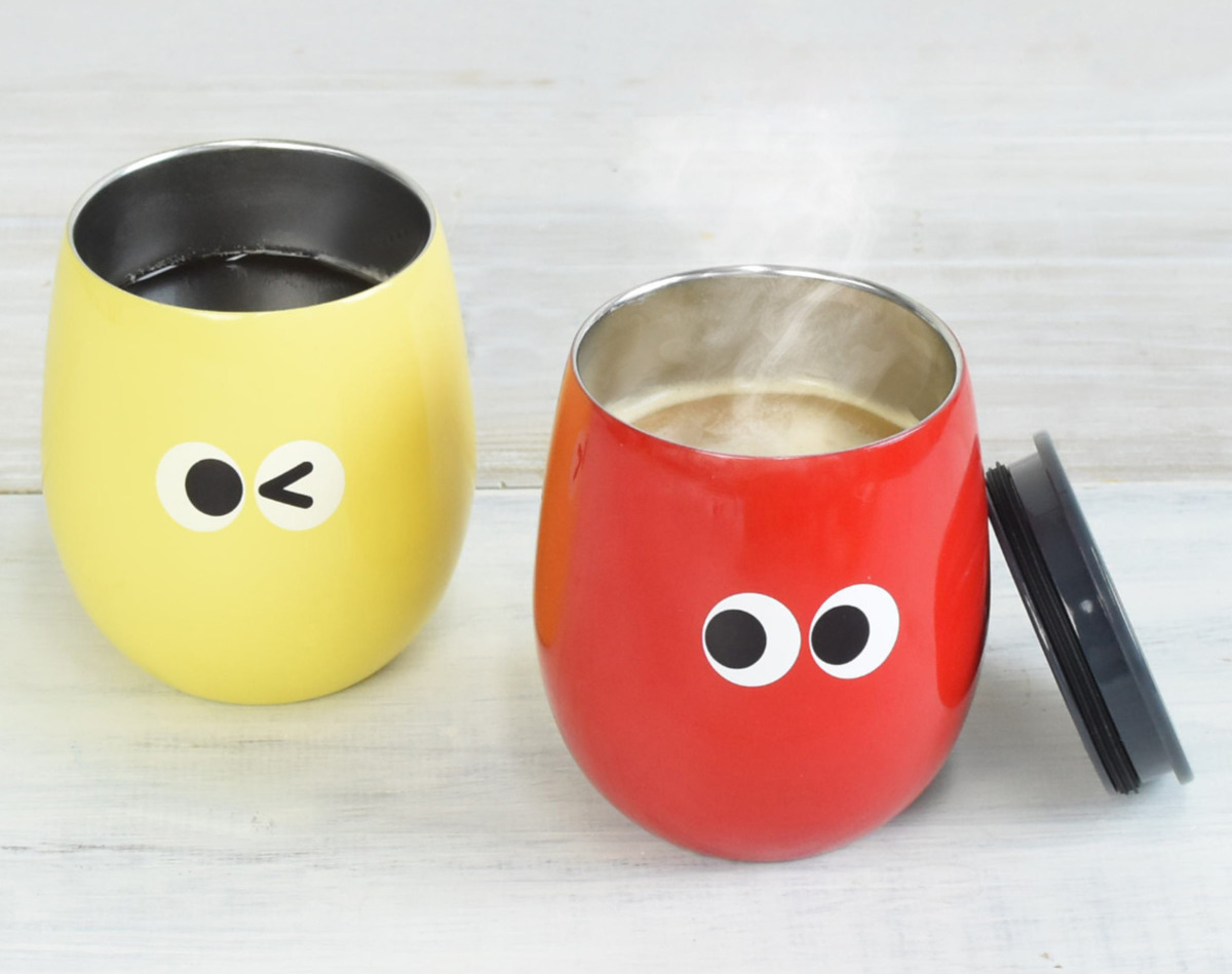 イロイロオメメのポップでカラフルなタンブラーです。色によって表情が異なり、ホッと癒されるデザインです。お子様から大人まで幅広くお使いいただけます。また、カラーバリエーションが豊富なので、友人同士で色を選んで楽しめます。毎日のティータイムやオフィスでのマイカップとして活躍します。