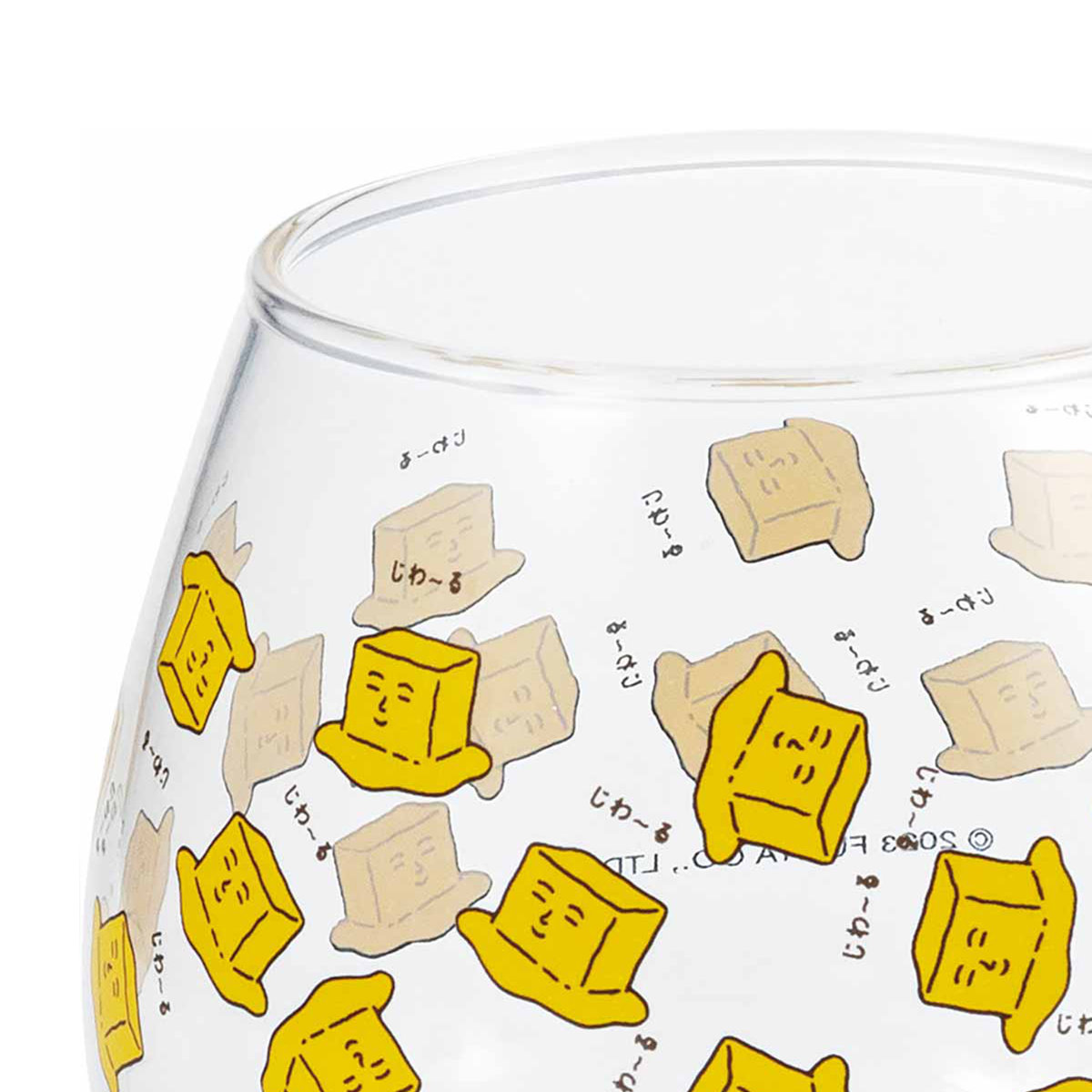 FUJIYAの人気お菓子のイラストがかわいいゆらゆらグラスです。底が丸いため、アイスコーヒーなど色付きのドリンクを注ぐとキャラクターがゆらゆらと揺れているように見えるユニークなデザインです。容量約290mlの使いやすいサイズで、ジュースや炭酸飲料にぴったり。安心の日本製で、贈り物にもおすすめです。
