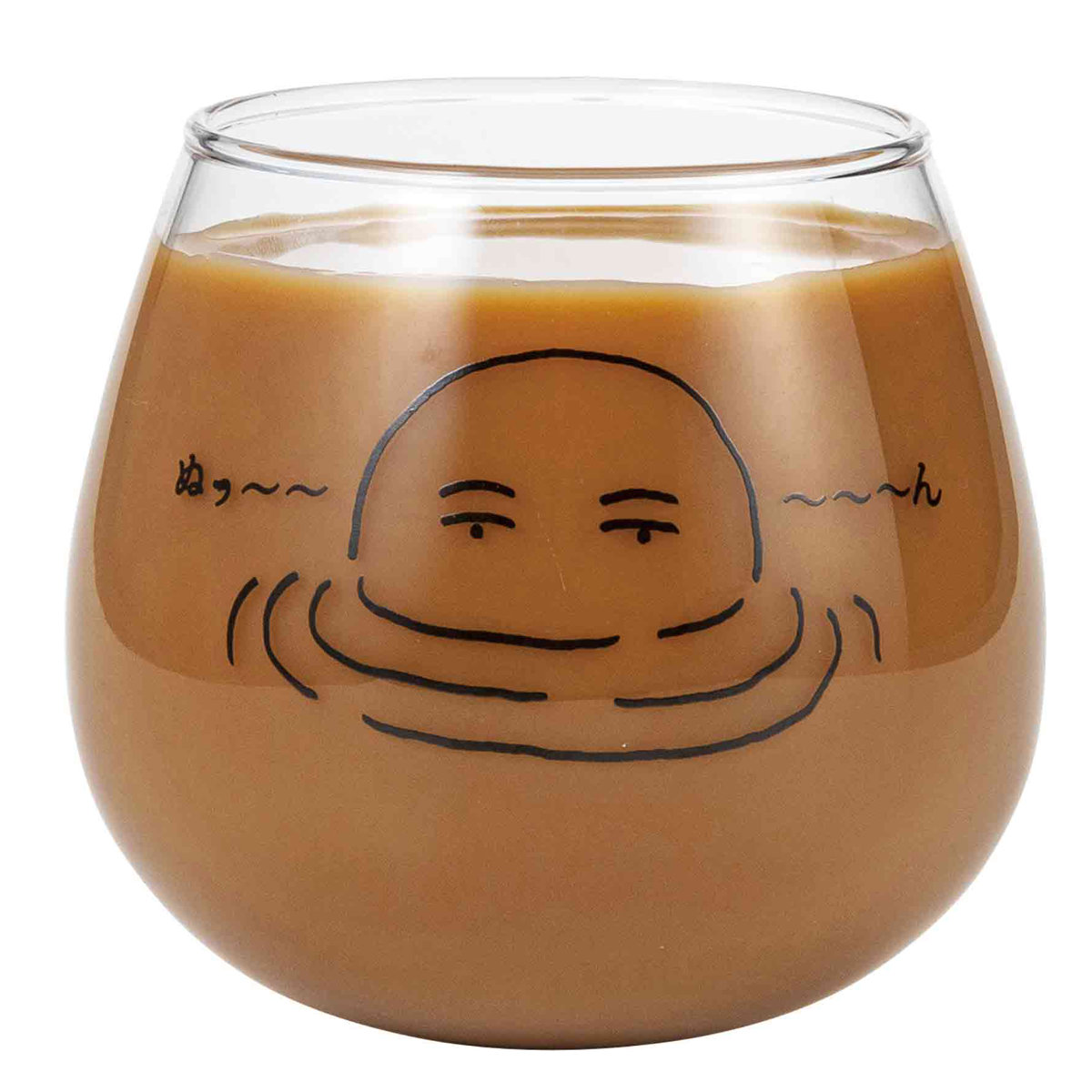 ●底が丸いため、アイスコーヒーなど色付きのドリンクを注ぐとキャラクターがゆらゆらと揺れているように見えるユニークなデザインです。