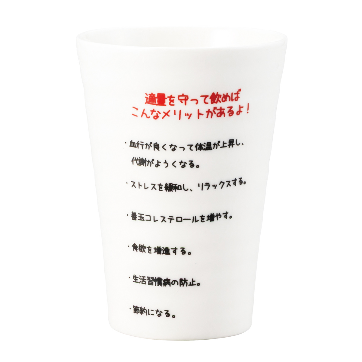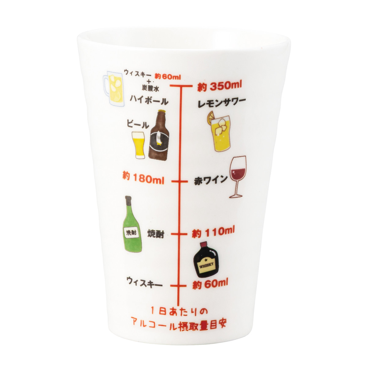 ●1日あたりのアルコール摂取量目安が印字されたユニークなタンブラーです。