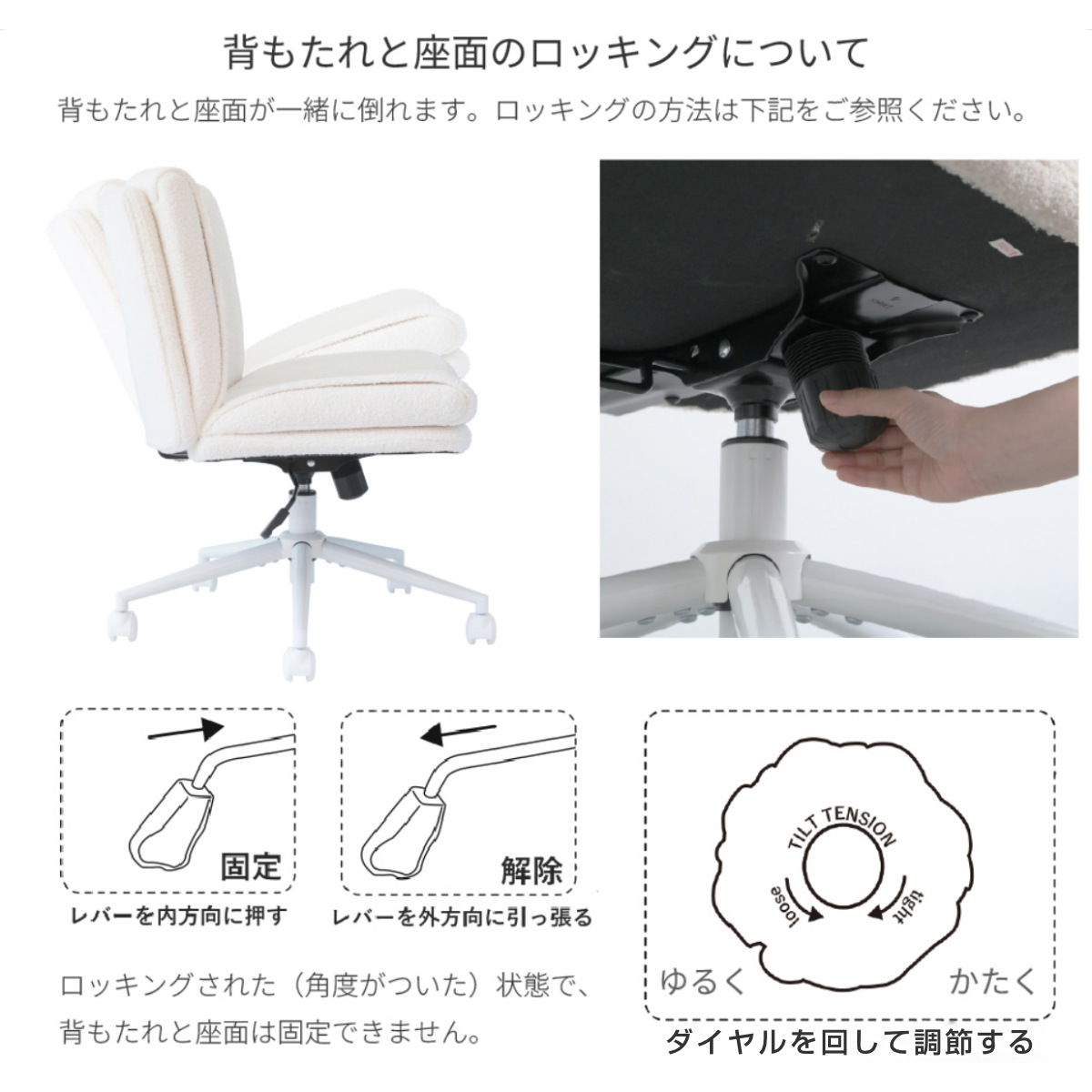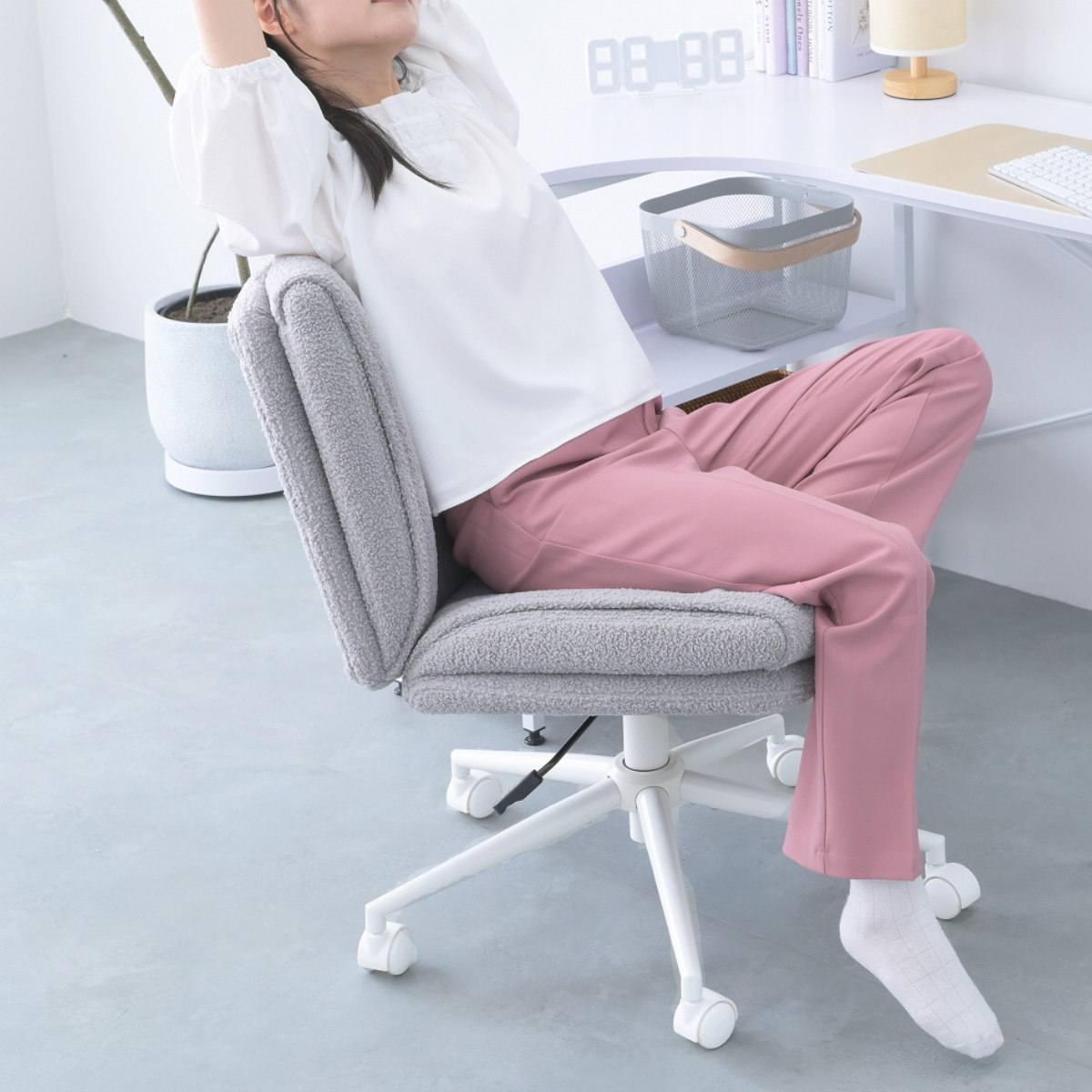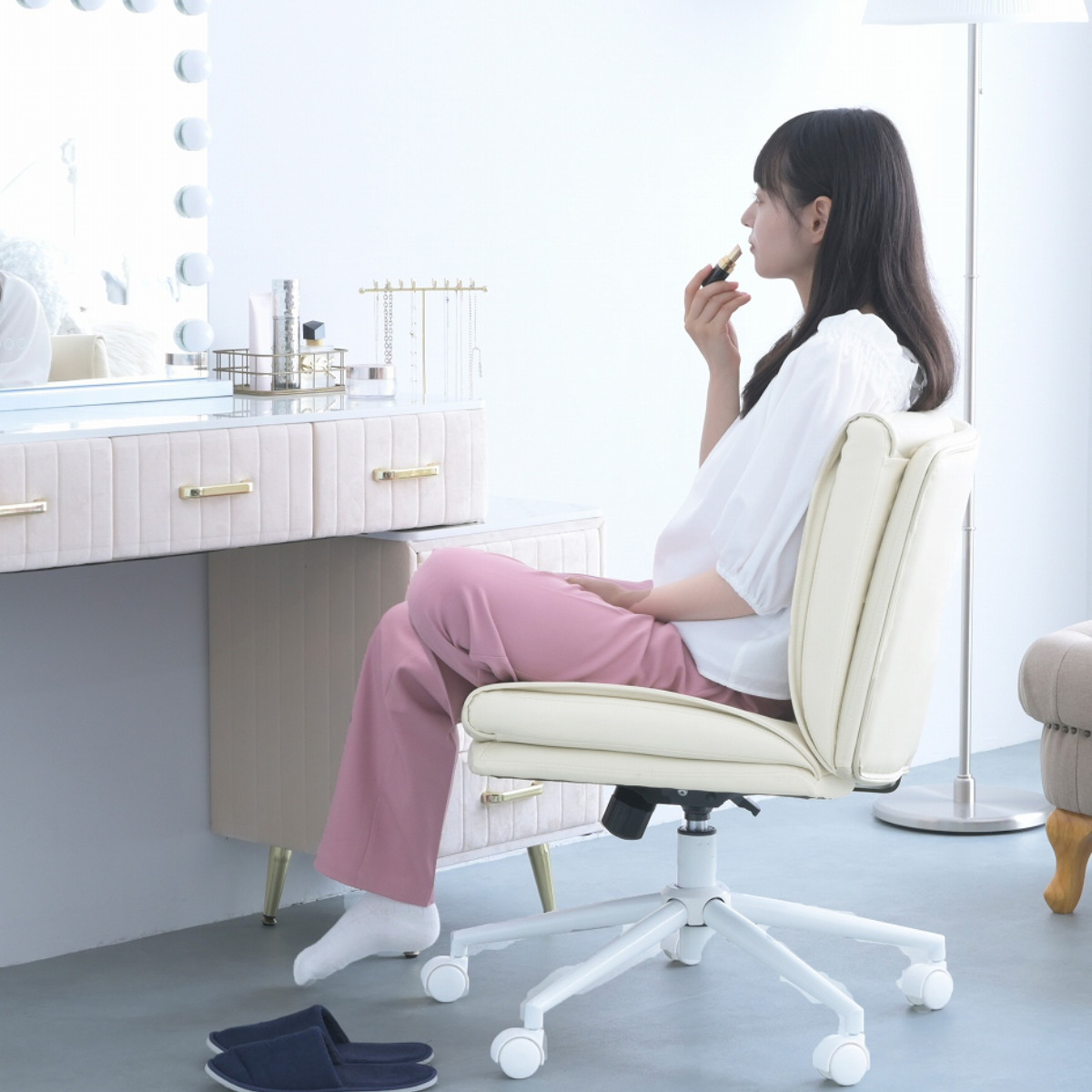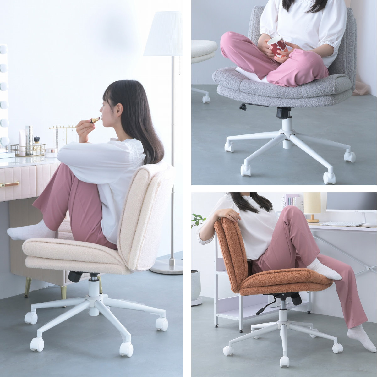 ゆったりあぐらもかける広々座面に、くるっと回る360度回転&ロッキング機能付き。可愛くてリラックスできるご褒美チェアです。長時間座っても疲れにくく、おうち時間をもっと心地よく過ごせます。