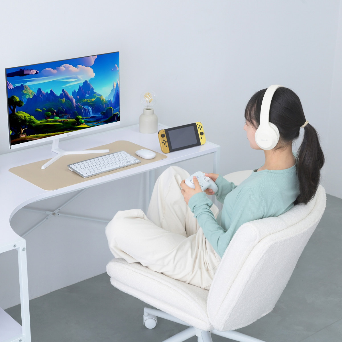 おしゃれな空間の世界観を壊さず、快適なゲーム環境を実現。あぐらもかけるから、リラックスしながら趣味のひと時を。