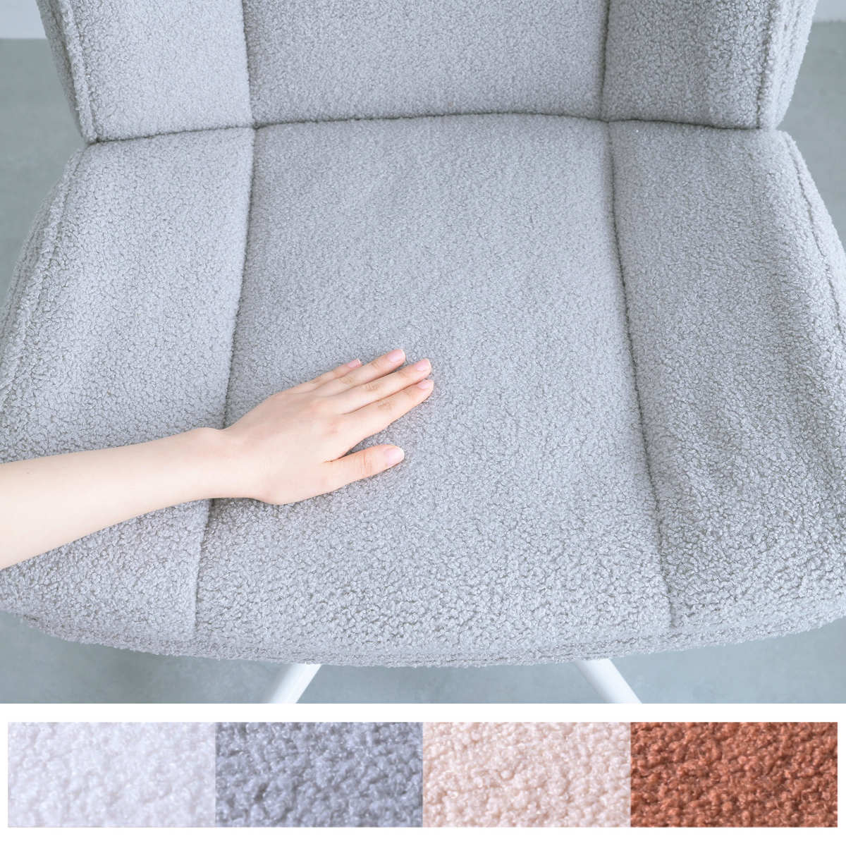 ホワイト、グレー、ベージュ、ブラウンの4色は、ずっと触れていたくなるようなモコモコとした優しい質感のフリース生地を使用しています。お部屋の雰囲気をふんわりと和らげてくれます。