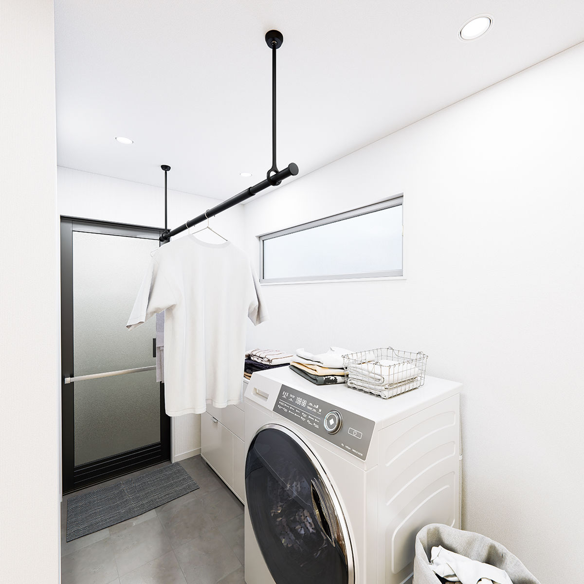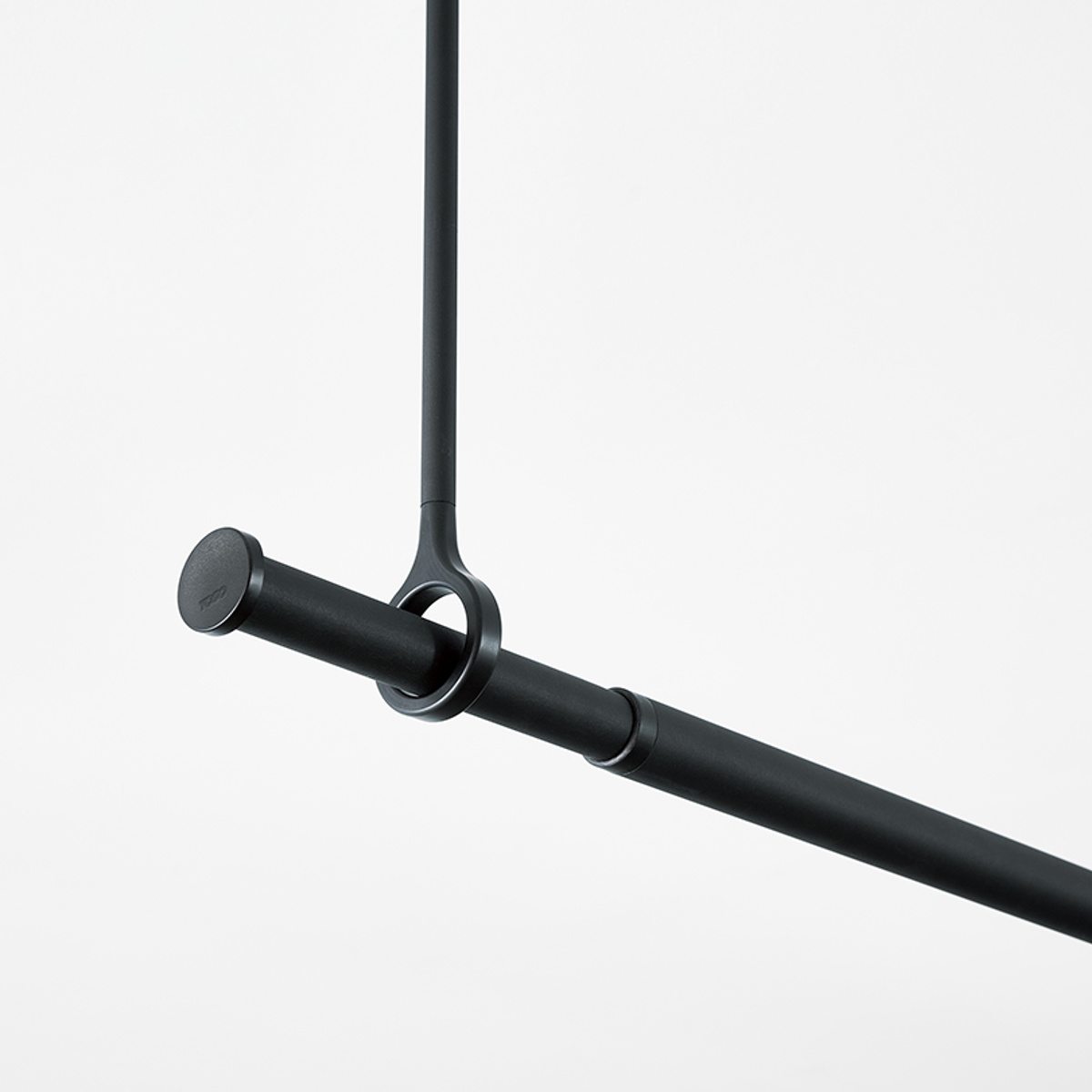 ブラケット、吊りポール、本体バーで全て同色で仕上げており、製品全体で統一感のあるこだわりのデザインです。