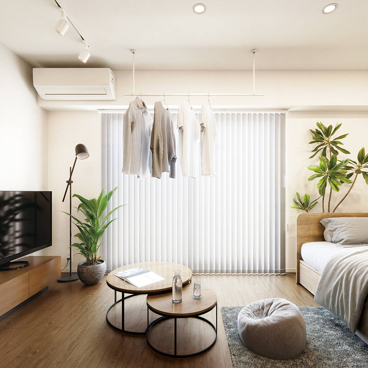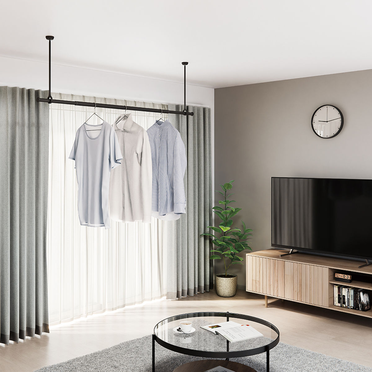吊りポールがワンタッチで着脱可能。使用しない時は、取り外してお部屋をスッキリ保てます。ブラケットを取り付けるだけの省施工もポイントです。