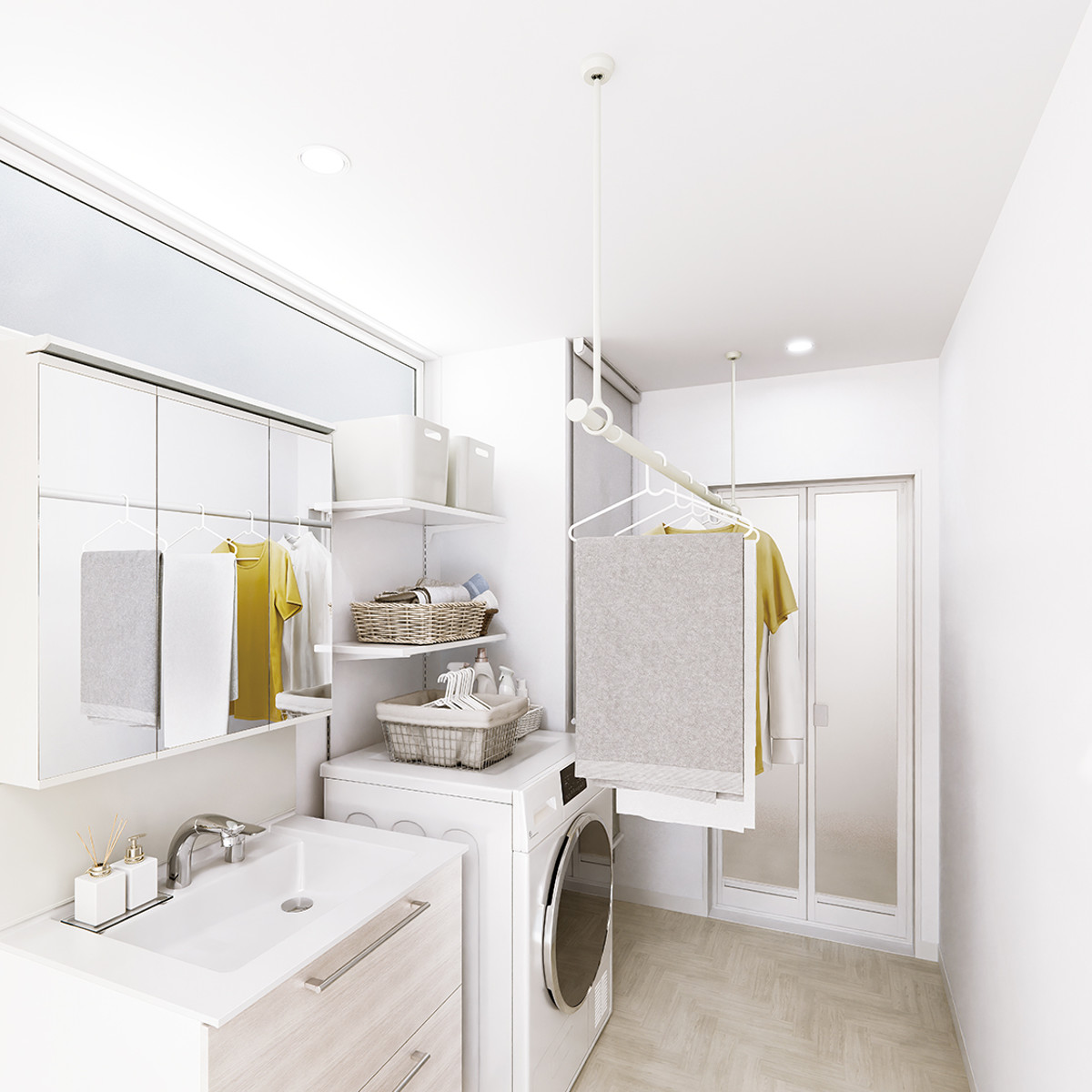 ものを掛けたとき、ランドリーバーが揺れても、減衰機能により揺れが早くおさまります。
