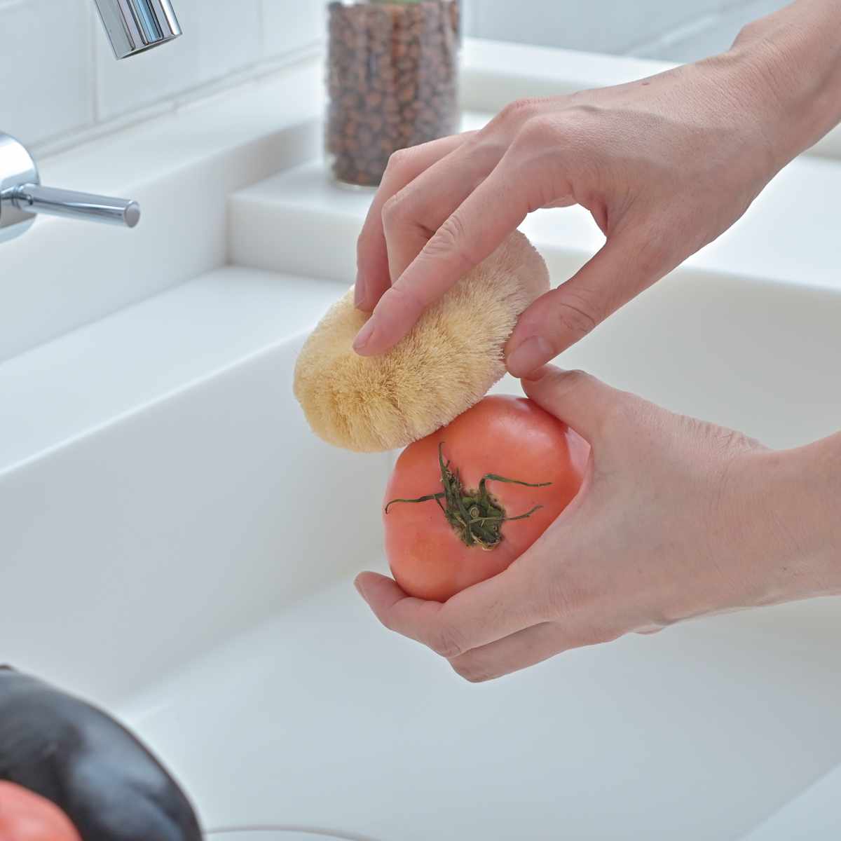 泥のついた野菜の洗浄にもお使いいただけます。ジャガイモなど丸みのある野菜も洗いやすく、細かな繊維がすき間に入り込み、泥をやさしく拭き取ります。