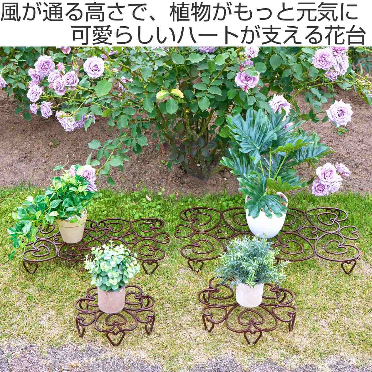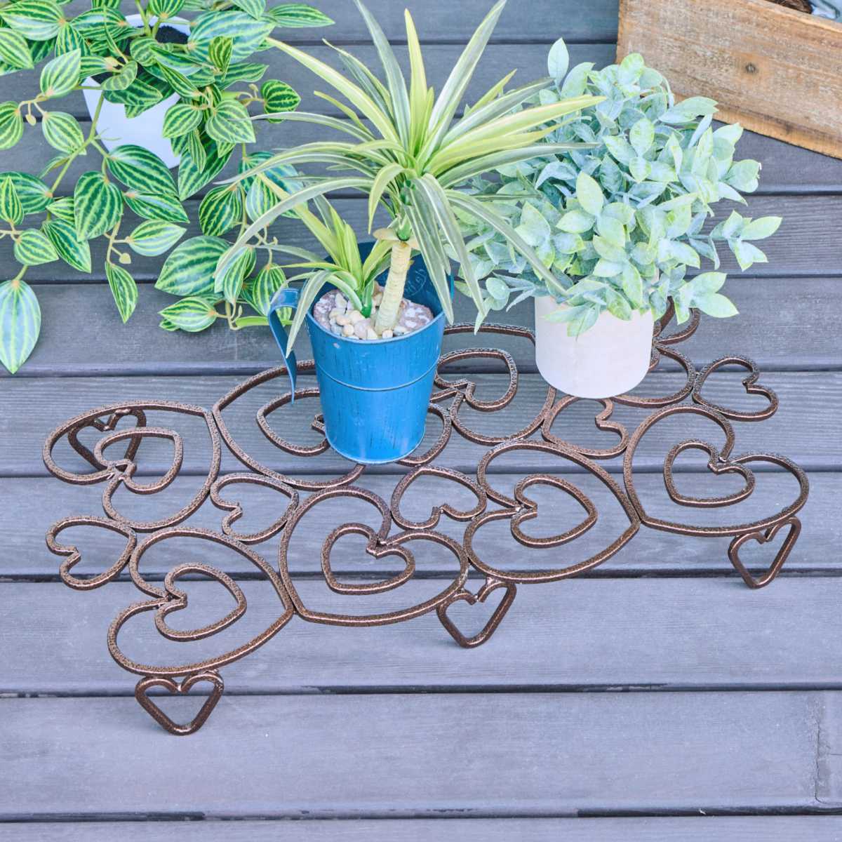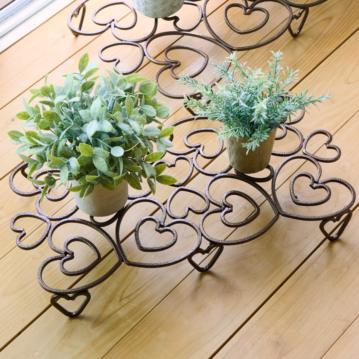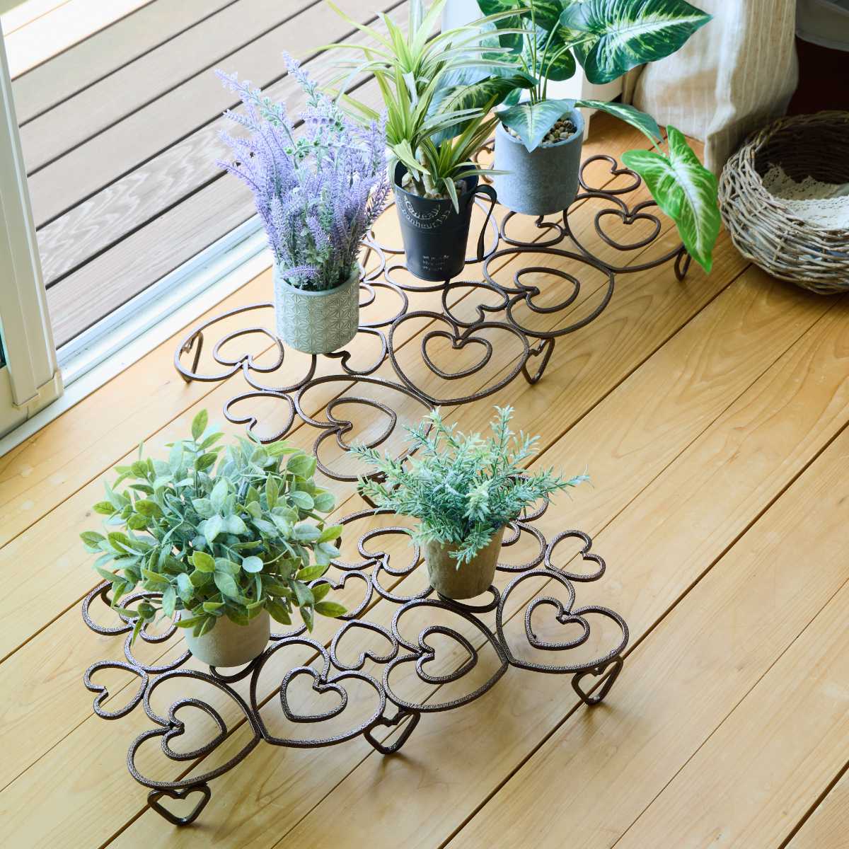 ハートをモチーフにしたアンティーク風のデザインがおしゃれ。丈夫なブロンズ製なので、重たい植木鉢もしっかり支えます。