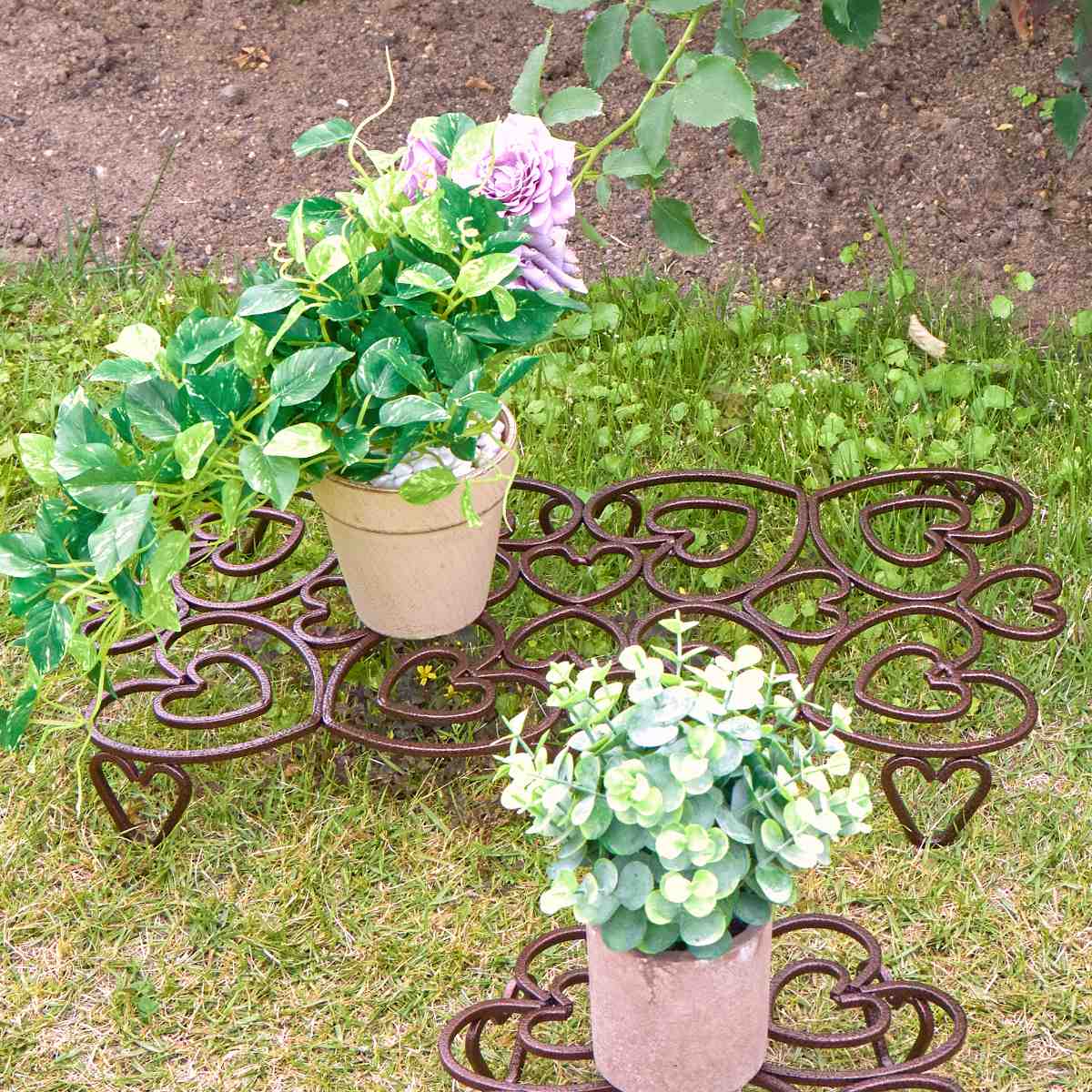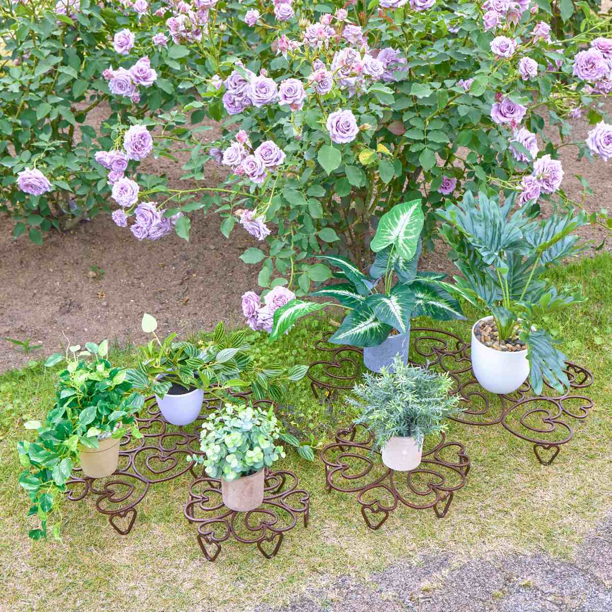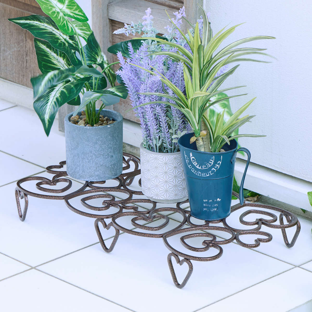 ハートをモチーフにしたアンティーク風のデザインがおしゃれ。丈夫なブロンズ製なので、重たい植木鉢もしっかり支えます。
