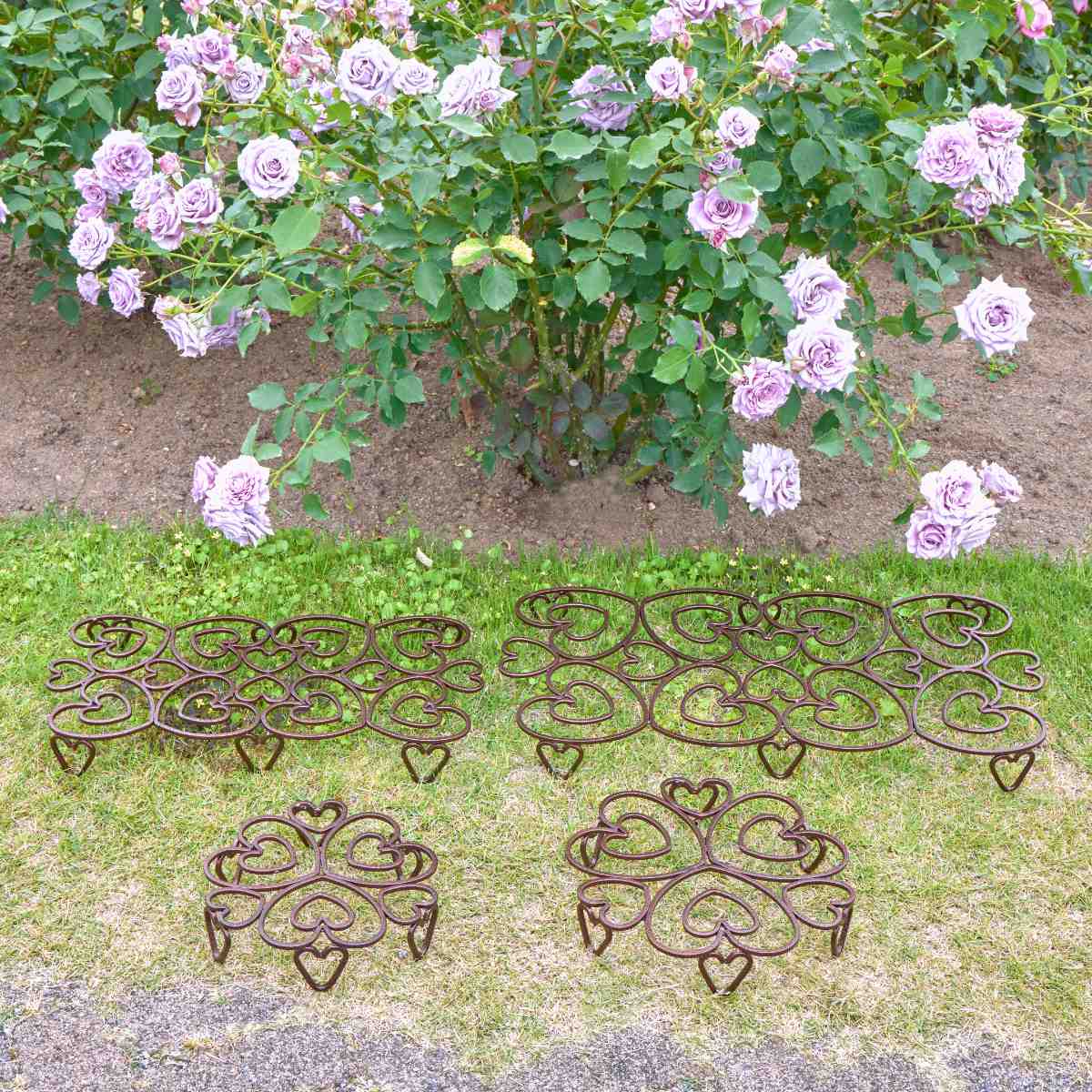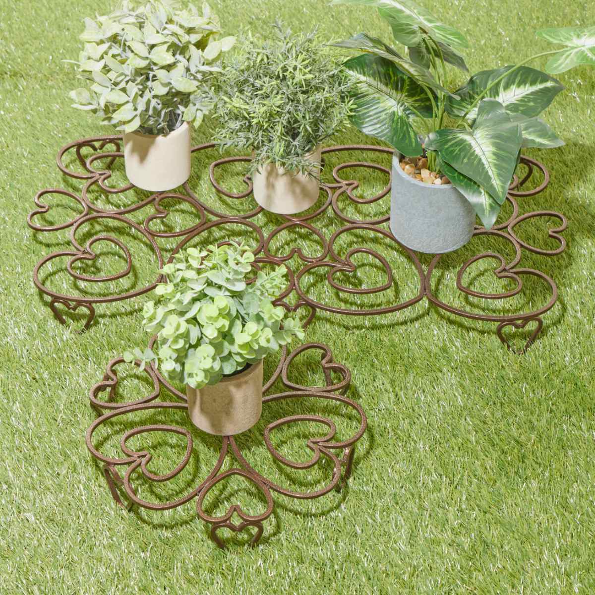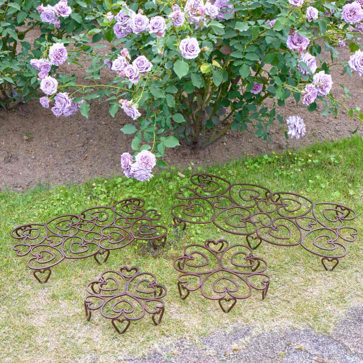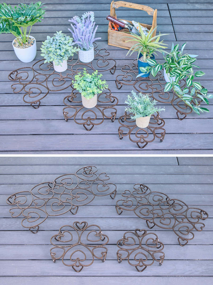 ハートをモチーフにしたアンティーク風のデザインがおしゃれ。丈夫なブロンズ製なので、重たい植木鉢もしっかり支えます。