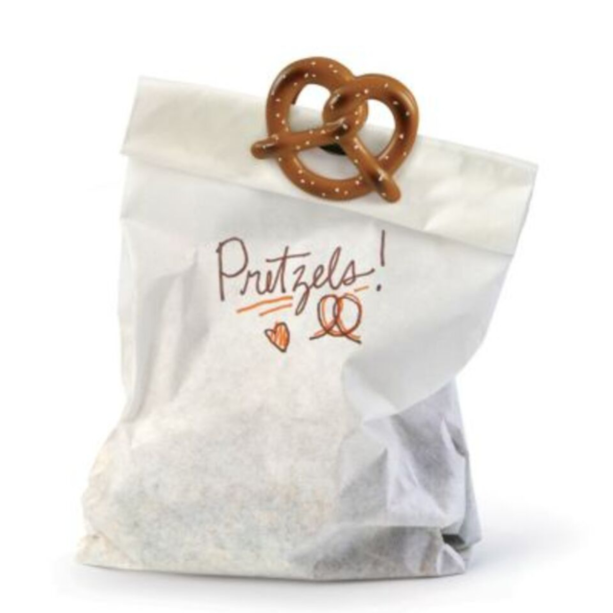 ●プレッツェルの形がアクセントになりながら、お菓子の袋を留めて湿気を防ぎます。