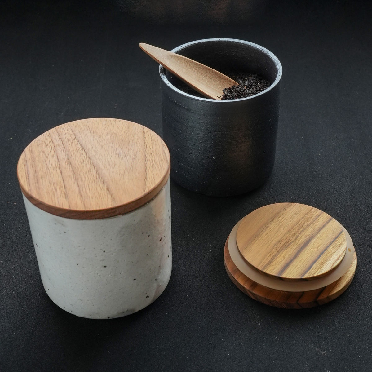 - 本体:陶器 フタ:天然木(チーク材、オイル仕上げ) パッキン:シリコン